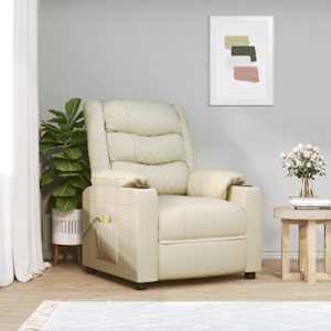 Namestite se in uživajte na tem izjemno udobnem masažnem stolu! Funkcija ročnega nagiba: Ležalnik je posebej zasnovan s 3 položaji nagiba, tako da lahko ročno nastavite naslonjalo in oporo za noge glede na vaše udobje.Funkcija vibriranja: 6 masažnih točk vam omogoča, da izkusite bolje usmerjeno masažo. Poleg tega vam priloženi ročni upravljalnik omogoča izbiro različnih programov masaže. Masažno funkcijo napaja USB priključek, vendar certificiran 5V vir napajanja USB ni priložen.Udobno sedenje: Sedež, naslonjalo za hrbet in široki nasloni za roke so oblečeni v umetno usnje ter zagotavljajo prijeten in topel občutek, da se med sedenjem počutite prijetno. Umetno usnje je zelo trpežen material. Je odporno na madeže, zato ga lahko preprosto očistite z vlažno krpo. Gladka površina mu prav tako daje razkošen videz in lepoto pravega usnja.Trden in stabilen okvir: Okvir iz lesa in kovine zagotavlja trdno strukturo in stabilnost. Ta naslanjač je udoben in trpežen.
