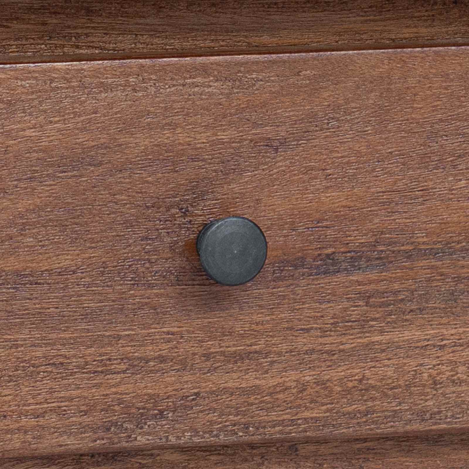 Ta miza združuje stil in prakso ter je super za vsak hodnik, dnevno sobo ali pisarno. Izdelana iz trdnega mahagonijevega lesa z rjavo obdelavo, prinaša pridih elegance. Njene kompaktne dimenzije 110 x 30 x 79 cm so idealne za ozke prostore in ponujajo praktične rešitve za shranjevanje. Kakovostni materiali: Ta miza je narejena iz vrhunskega trdnega mahagonijevega lesa, ki doda sofisticiranost in trajnost. Naravna lesena površina s toplo rjavo obdelavo krepi vabljiv videz, ki ne prevladuje v prostoru. Stilski detajli: Z medeninastimi ročaji in nogami iz mahagonijevega lesa vsak del te mize prispeva h kvalitetni zasnovi. Medenina doda subtilen sijaj, kar povečuje njeno privlačnost, noge pa zagotavljajo stabilnost. Funkcionalna zasnova: Ta miza združuje estetiko in funkcionalnost. Ravna površina omogoča eleganten prikaz okrasnih predmetov ali nujnih stvari, kar jo naredi primerno za dom ali pisarno. Kompaktna konfiguracija: Z dimenzijami 110 x 30 x 79 cm se miza prilega manjšim prostorom in hodnikom ter ponuja praktične površine brez zavzemanja preveliko prostora. Ta učinkovita zasnova je super za stanovanja in pisarne. Nizko vzdrževanje: Mizo je enostavno vzdrževati. Samo jo obrišite s suho krpo, da ohranite njen super videz. Naravna površina iz mahagonija je odpornna na prah, kar zagotavlja dolgo trajno eleganco.