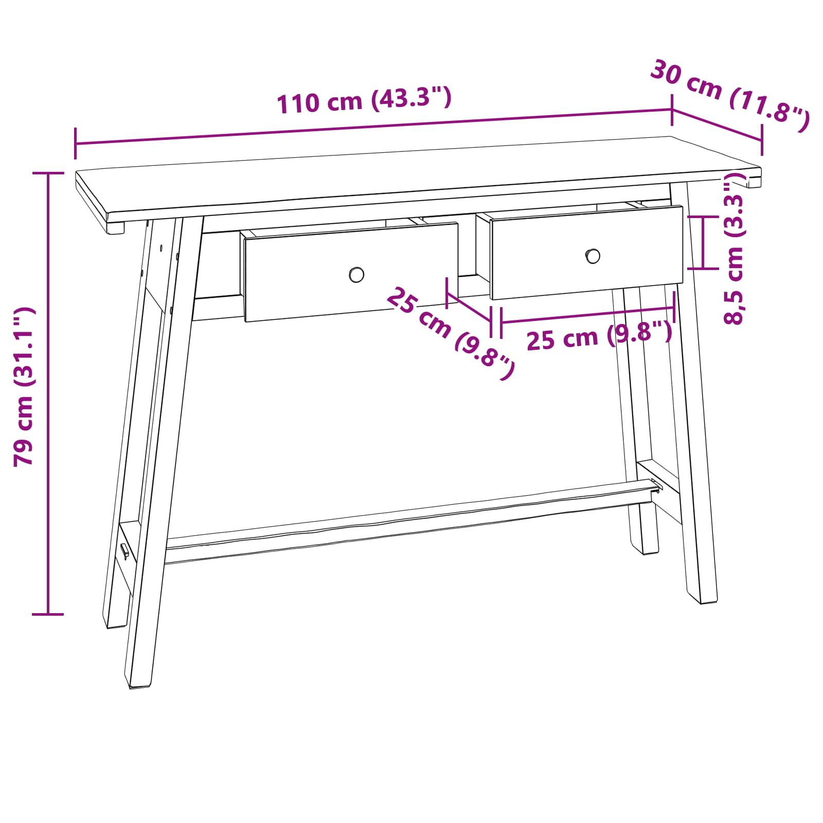 - Splošne dimenzije: 110 x 30 x 79 cm (D x Š x V)