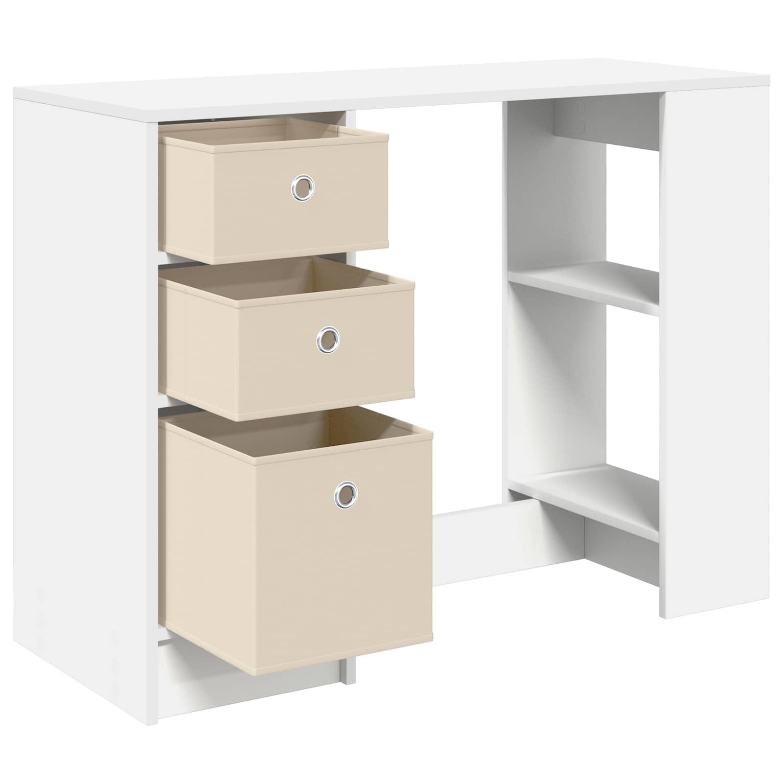 Ta delovni niz je modern in ima pravokotno obliko, kar je super za vse, ki si želijo funkcionalnost in stil v svoji pisarni ali dnevni sobi. Z minimalističnim dizajnom doda pridih sophistication vsakemu prostoru, hkrati pa je odlična izbira za pisanje, študij ali upravljanje vsakodnevnih nalog. Zasnovana je tako, da se brez težav prilega sodobnim domovom, miza pa vam pomaga povečati produktivnost in popestriti decor. Njena konstrukcija iz inženirskega lesa je trajna in enostavna za vzdrževanje, kar jo naredi zaupanja vreden kos pohištva, ki traja. Gradnja iz inženirskega lesa Miza je narejena iz inženirskega lesa, ki je trpežen in stabilen. Gladko površje je enostavno za vzdrževanje, kar omogoča dolgotrajno uporabo brez obrabe, ki jo lahko naravni les doživi. Inženirski les nudi čist videz, kar je odlično za profesionalno delovno okolje. Funkcionalni predali Ta miza ima več predalov, ki omogočajo preprosto shranjevanje. Vgrajeni ročaji prispevajo k čistejši podobi in izboljšujejo uporabnost. Ne glede na to, ali gre za dokumente ali šolske potrebščine, so predali zasnovani tako, da maksimizirajo prostor brez izgube sloga. Oblikovanje z vgrajenimi ročaji Ročaji so vgrajeni v predale, kar dodaja udobje in estetski videz. Ta zasnova izboljša varnost, saj ni izbočenih elementov, in izboljša izgled mize. Pravokotna oblika in velika površina Pravokotna zasnova nudi veliko delovne površine za različne naloge, ne glede na to, ali gre za pisanje ali delo na računalniku. Obsežna površina ponuja prostor za računalnike in dekoracije, kar omogoča prilagodljiv delovni prostor. Enostavna sestava Ta miza je zasnovana za enostavno sestavljanje in potrebuje samo osnovna orodja, kot je izvijač, in dve osebi. Hitro jo lahko sestavite in postavite na izbrano mesto, ne da bi pri tem ogrozili stabilnost mize.