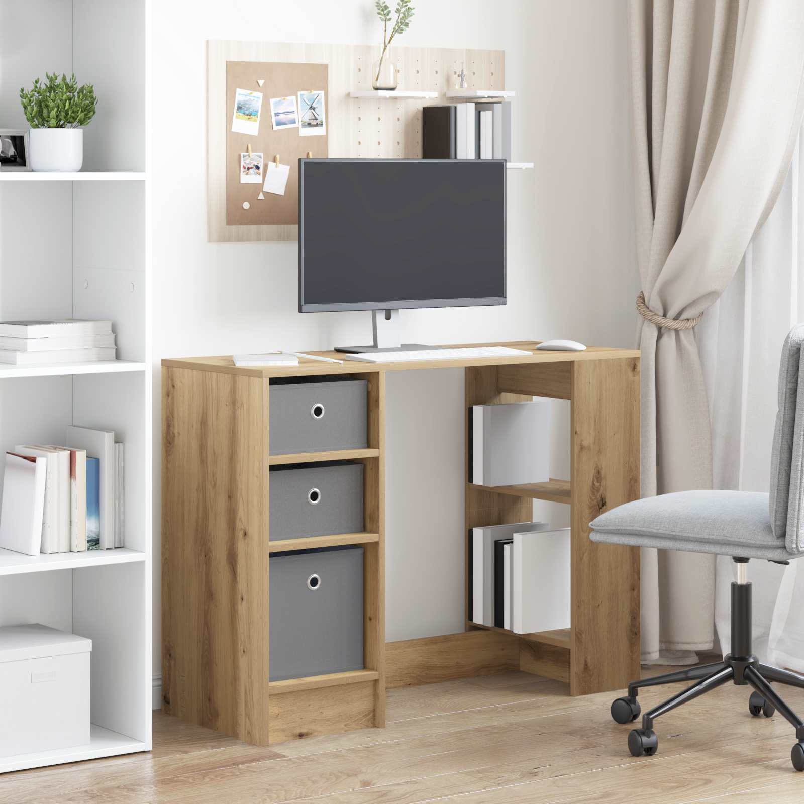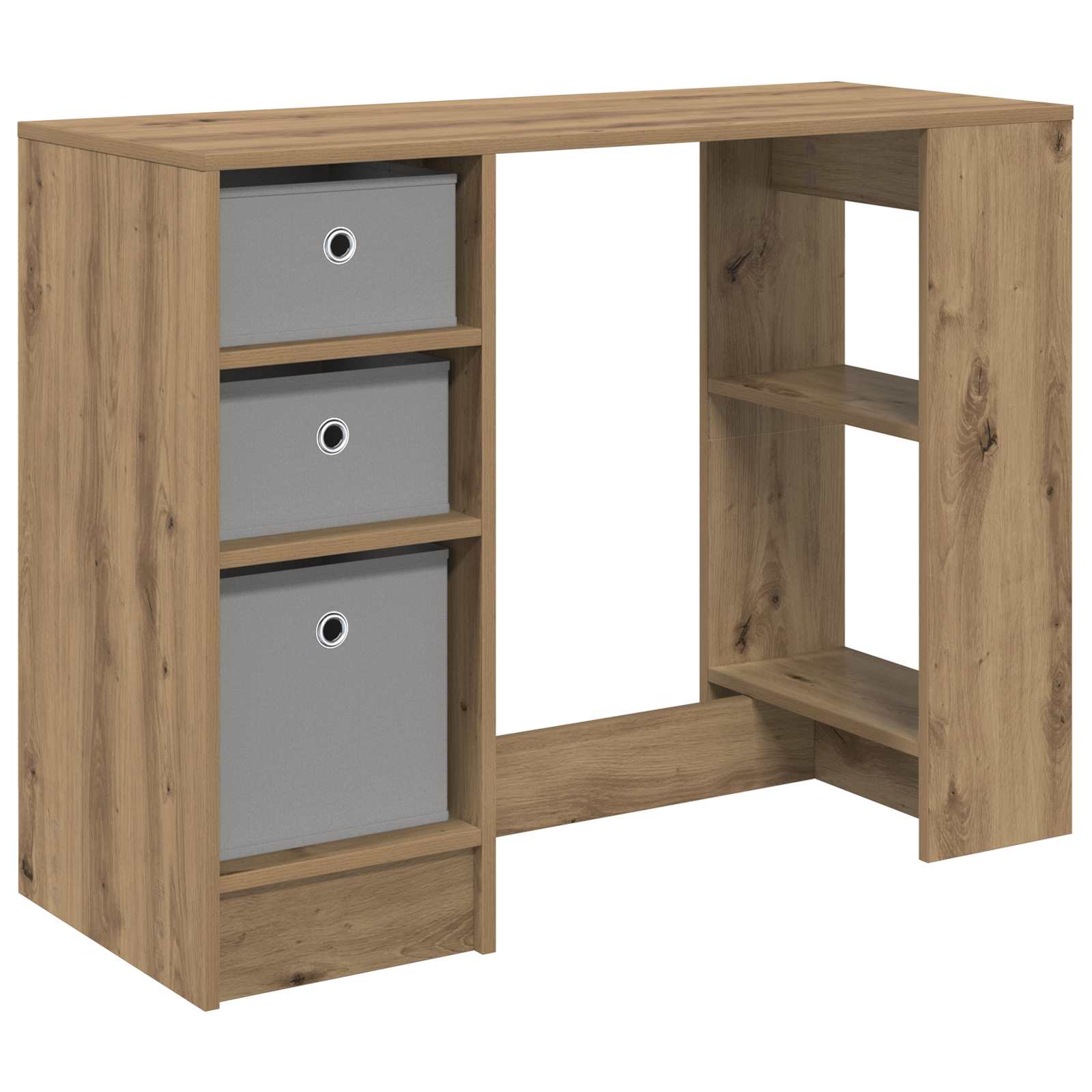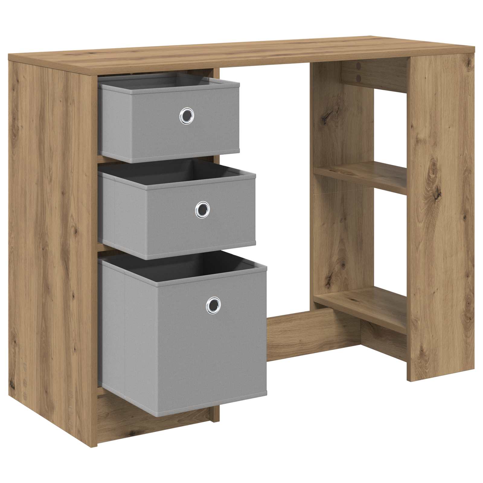 Ta delovni niz je modern in ima pravokotno obliko, kar je super za vse, ki si želijo funkcionalnost in stil v svoji pisarni ali dnevni sobi. Z minimalističnim dizajnom doda pridih sophistication vsakemu prostoru, hkrati pa je odlična izbira za pisanje, študij ali upravljanje vsakodnevnih nalog. Zasnovana je tako, da se brez težav prilega sodobnim domovom, miza pa vam pomaga povečati produktivnost in popestriti decor. Njena konstrukcija iz inženirskega lesa je trajna in enostavna za vzdrževanje, kar jo naredi zaupanja vreden kos pohištva, ki traja. Gradnja iz inženirskega lesa Miza je narejena iz inženirskega lesa, ki je trpežen in stabilen. Gladko površje je enostavno za vzdrževanje, kar omogoča dolgotrajno uporabo brez obrabe, ki jo lahko naravni les doživi. Inženirski les nudi čist videz, kar je odlično za profesionalno delovno okolje. Funkcionalni predali Ta miza ima več predalov, ki omogočajo preprosto shranjevanje. Vgrajeni ročaji prispevajo k čistejši podobi in izboljšujejo uporabnost. Ne glede na to, ali gre za dokumente ali šolske potrebščine, so predali zasnovani tako, da maksimizirajo prostor brez izgube sloga. Oblikovanje z vgrajenimi ročaji Ročaji so vgrajeni v predale, kar dodaja udobje in estetski videz. Ta zasnova izboljša varnost, saj ni izbočenih elementov, in izboljša izgled mize. Pravokotna oblika in velika površina Pravokotna zasnova nudi veliko delovne površine za različne naloge, ne glede na to, ali gre za pisanje ali delo na računalniku. Obsežna površina ponuja prostor za računalnike in dekoracije, kar omogoča prilagodljiv delovni prostor. Enostavna sestava Ta miza je zasnovana za enostavno sestavljanje in potrebuje samo osnovna orodja, kot je izvijač, in dve osebi. Hitro jo lahko sestavite in postavite na izbrano mesto, ne da bi pri tem ogrozili stabilnost mize.