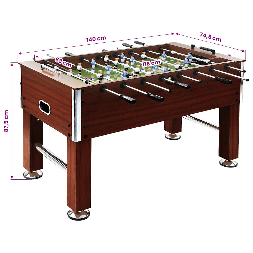 Ta nogometna miza je kot nalašč za tekme ena na ena ali skupinsko igranje, saj omogoča prijateljsko tekmovanje z družino in prijatelji. Trpežna konstrukcija: Nogometna miza je izdelana iz MDF in jekla, zato je odporna na intenzivne tekme in igranje ter zagotavlja dolgotrajno uživanje v prihodnjih letih.Udobno igranje: Vrhunsko igranje: uživajte v gladkem igranju s prilagodljivimi drsnimi palicami za igralce in nedrsečimi ročaji, zasnovanimi za enostaven oprijem in udobno igranje, zaradi česar je vsaka tekma užitek.Nastavljiva zasnova: Miza ima nastavljive noge, ki omogočajo prilagoditev višine za največje udobje in prilagodljivost.Vsestranska zabava: Ta kompaktna nogometna miza je idealna za družinska srečanja, zabave ali priložnostno igranje in prinaša navdušenje nad nogometom v vaš dom, zato je idealna tako za otroke kot odrasle med prazniki in posebnimi priložnostmi.Celoten nogometni komplet: Ta nogometna miza je popolnoma opremljena z vsem, kar potrebujete: 2 gola, 2 nogometni žogi, 2 tabli, 8 igralnih palic in 22 igralcev, kar zagotavlja resnično pristno igralno izkušnjo. Opozorilo Ni primerno za otroke, mlajše od 36 mesecev. Majhni deli. Nevarnost zadušitve! Ta izdelek lahko sestavi SAMO odrasla oseba. Samo za uporabo pod neposrednim nadzorom odrasle osebe. Hranite izven dosega majhnih otrok, mlajših od 3 let. Opozorilo. Ni primerno za otroke mlajše od 3 let. Majhni delci. Nevarnost zadušitve. GPSR