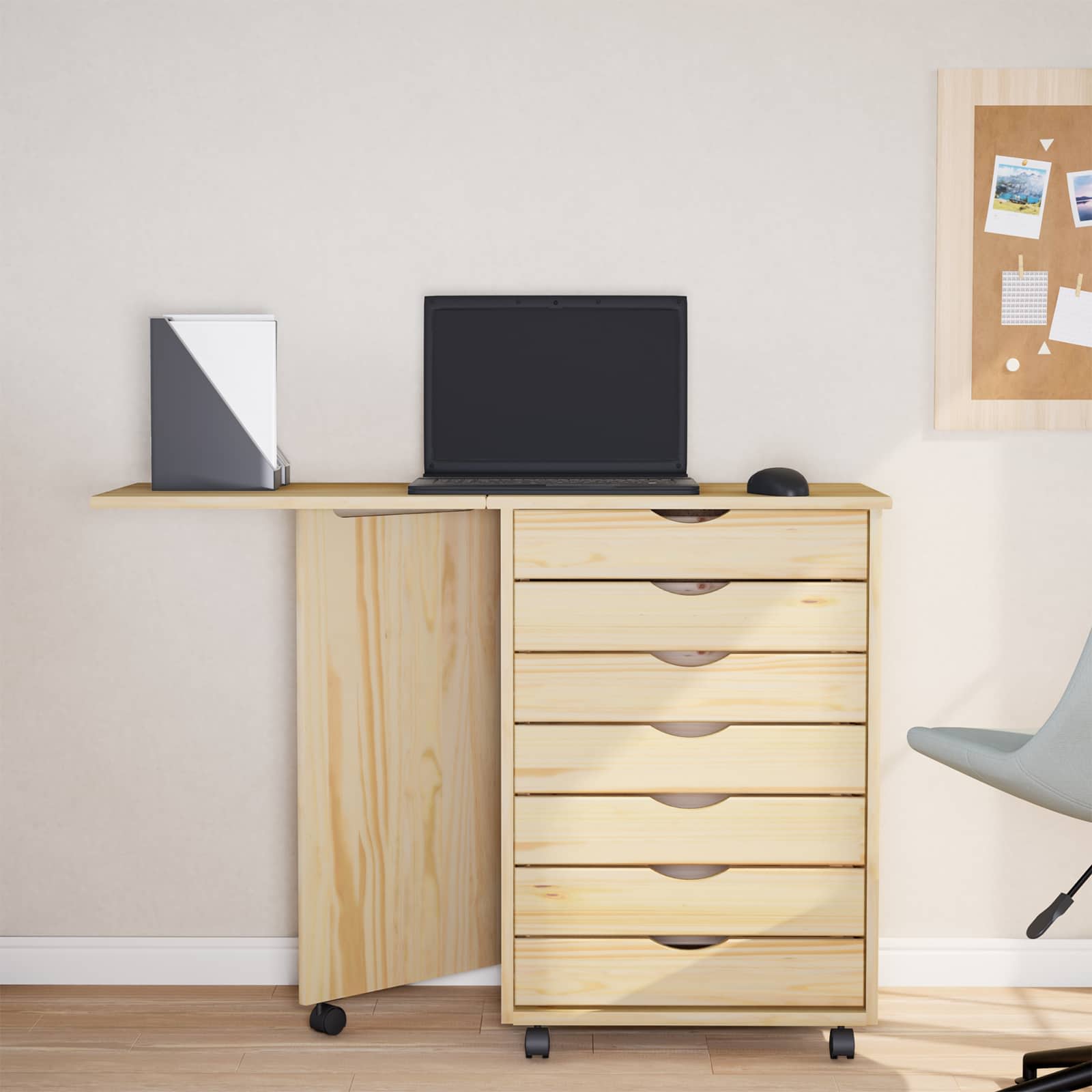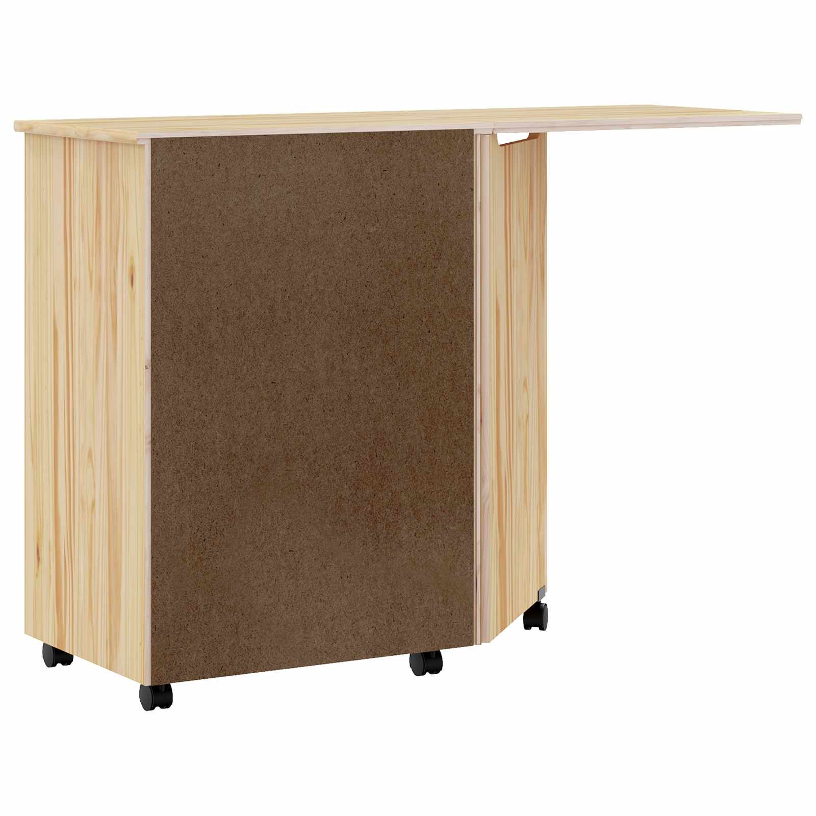 S to premično omarico z mizo boste dosegli popoln spoj praktičnosti in estetike. Z oblikovanjem, ki je preprosto in funkcionalno, je odličen dodatek za dom ali pisarno. Ta modernega sloga bo vaš zanesljiv sopotnik, če potrebujete učinkovito organizacijo in delovno zmogljivost. Njena pravokotna oblika in naravna eleganca borovega lesa prinaša moderno vzdušje v vsako okolje. Moderna enostavnost: Ta premična omara z mizo je zasnovana v modernem slogu, ki daje prednost preprostosti in uporabnosti. Čiste linije in minimalizem ji dajo prakticen in privlačen videz, ki se prilega vsakemu sodobnemu prostoru. Robustni material: Zgrajena iz trdnega borovega lesa, ta omara zagotavlja dolgotrajno trdnost in stabilnost. Kvaliteta materiala omogoča dolgotrajno uporabo, kar jo dela zanesljivo v različnih okoljih. Integrirana zasnova: S zložljivo mizo, ta 2-v-1 dizajn omogoča prihranek prostora, ko je miza zaprta. Ne glede na to, ali jo uporabljate kot mizo ali omaro, je funkcionalna in učinkovita, kar je ključno za tiste, ki želijo optimizirati prostor. Praktične lastnosti: S kolesi je omara enostavna za premikanje, kar omogoča prilagoditev postavitve s lahkoto. To povečuje prilagodljivost vašega prostora. Edinstvena rešitev za shranjevanje: Z minimalističnimi ročaji je dostop do shranjenih predmetov enostaven. Strategično nameščeni ročaji zagotavljajo praktično uporabo in ohranjajo čist videz.