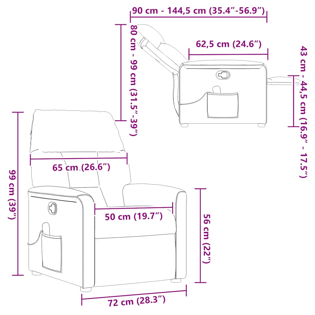 Namestite se in uživajte na tem izjemno udobnem masažnem naslanjaču! Funkcija ročnega nagiba: Ta stol z nagibom ima ročaj na desni strani. S preprostim potegom ročaja lahko ročno nastavite naslon za noge in naslonjalo za hrbet v poljuben položaj glede na vaše udobje. Ta funkcija omogoča največji nagib 135 stopinj. Poleg tega lahko naslonjalo hitro vrnete na prvotno mesto z enostavnim potegom ročaja.Funkcija vibriranja: 6 masažnih točk vam omogoča, da izkusite bolje usmerjeno masažo. Poleg tega vam priloženi ročni upravljalnik omogoča izbiro različnih programov masaže. Masažno funkcijo napaja USB priključek, vendar certificiran 5V vir napajanja USB ni priložen.Udobno sedenje: Močno oblazinjeni sedež, naslonjalo in široki nasloni za roke, prevlečeni s tkanino iz mikrovlaken, zagotavljajo prijeten in topel občutek, da se med sedenjem počutite prijetno. Mikrovlakna so sintetična tkanina, sestavljena iz zelo tankih vlaken, ki so še posebej odporna na madeže. Tkanina iz mikrovlaken je odlična izbira za oblazinjenje pohištva zaradi svoje trpežnosti in enostavnega čiščenja.Trden in stabilen okvir: Okvir iz lesa in kovine zagotavlja trdno strukturo in stabilnost. Ta naslanjač je udoben in trpežen. To napravo lahko uporabljajo otroci, stari 8 let in več, ter osebe z zmanjšanimi fizičnimi, senzoričnimi ali duševnimi sposobnostmi ali s pomanjkanjem izkušenj in znanja, če so pod nadzorom ali so bili poučeni o varni uporabi naprave in razumejo vključene nevarnosti. Otroci se ne smejo igrati z napravo. Čiščenja in uporabniškega vzdrževanja ne smejo izvajati otroci brez nadzora. Uporabljajte samo certificirani vhod DC 5 V. Višja napetost lahko povzroči pregrevanje in poškoduje napravo ter potencialno nevarnost pregrevanja in požara.