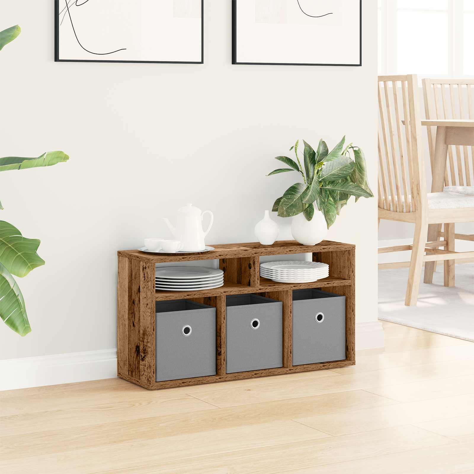 Ta moderna nizka omarica je praktična in stilna. Perfectna za organizacijo knjig in razstavnih predmetov, ima preprosto zasnovo. Njene čiste linije in minimalna okrasitev jo uvrščajo med napredne notranje elemente. Inženirska gradnja zagotavlja odlično stabilnost, vgradni ročaji pa dodajo moderen videz. Idealen za vse, ki cenijo enostaven in uporabni dizajn, bo spremenila prostor s svojo funkcionalnostjo in privlačnostjo. Okvir iz inženirskega lesa Zgrajen s trdnim inženirskim lesom, ta nizka omarica stoji močno in dolgo časa. Njena vsestranska zasnova prinaša gladek zaključek in usklajen ton, kar se lepo ujema s sodobnim stilom in ponuja dobro podporo za različne teže in obrabo. Oblikovanje z vgrajenimi ročaji Ti elegantni vgradni ročaji so na nivoju površine, kar daje omarici čist in moderen videz, hkrati pa omogoča enostavno dostopnost do shramb. Ta modra izbira dizajna izboljša ne le videz, ampak tudi uporabniško izkušnjo; hitro in lahko se odpiranje in zapiranje zagotovi. Obilna zmogljivost shranjevanja Z obiljem prostora ta nizka omarica zlahka sprejme knjige, dekoracije in druge potrebščine. Ne glede na to, ali gre za družinske fotografije ali vintage zbirke, njeni prostori in police zagotavljajo zavetje za vse te predmete ter pravilnost in red v dnevni sobi. Vsestrana uporaba Vsestrana zasnova nizke omarice se brez težav vnese v katerikoli prostor, hkrati pa se prilagaja različnim stilom in potrebam. Njena moderna privlačnost dela to omarico popolno za minimalistične, urbane ali prehodne prostore, kar jo naredi za dragocen kos v vsakem domu, ki išče fleksibilnost in prilagoditev. Osnovni podatki o sestavi Potrebujete dva za sestavo s pomočjo izvijača. Ta postopek zagotavlja, da je nizka omarica čvrsto zgrajena in deluje v skladu s pričakovanji, da boste uživali v njeni prostornosti in videzu v vašem bivalnem prostoru.