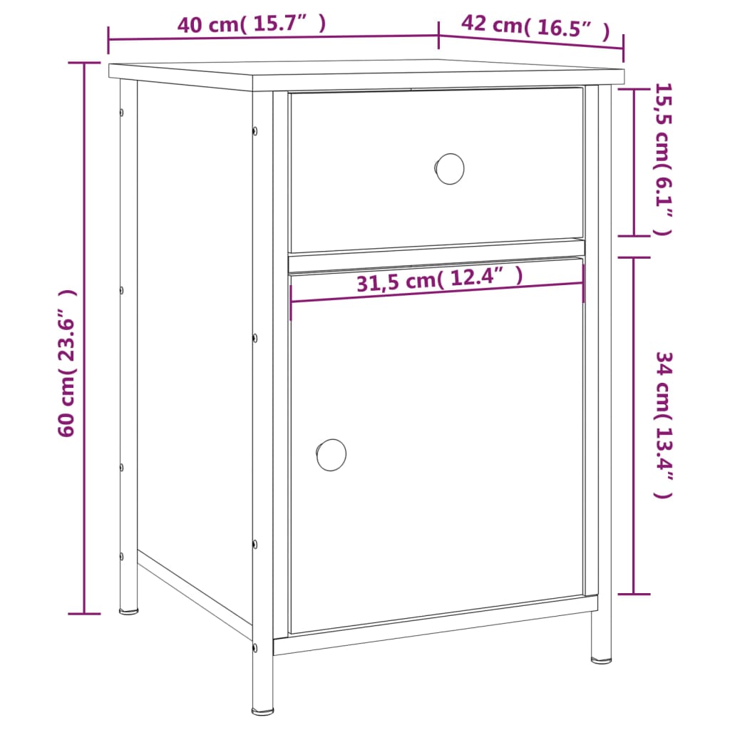 Te nočne omarice z elegantnim dizajnom so brezčasen dodatek za vaše notranje prostore. Vzdržljiv material: Inženirski les se ponaša z izjemno kakovostjo, gladko površino ter močjo, stabilnostjo in odpornostjo na vlago.Veliko prostora za shranjevanje: V omarici je dovolj prostora za shranjevanje, da bodo različne vsakodnevne potrebščine dobro urejene in dosegljive.Nastavljiv vijak: Višino črnega vijaka lahko prilagodite, da bo nočna omarica stabilna na neravnem terenu.Trden okvir: Železni okvirji zagotavljajo trdnost in stabilnost stranske omarice.Funkcija razstavljanja: Na površino mizice za ob posteljo lahko postavite tudi svoje najljubše slike, dekoracije ali rože ter tako obogatite svoje življenje. Opozorilo:Za preprečitev prevračanja je treba ta izdelek uporabiti s priloženo napravo za pritrditev na steno.