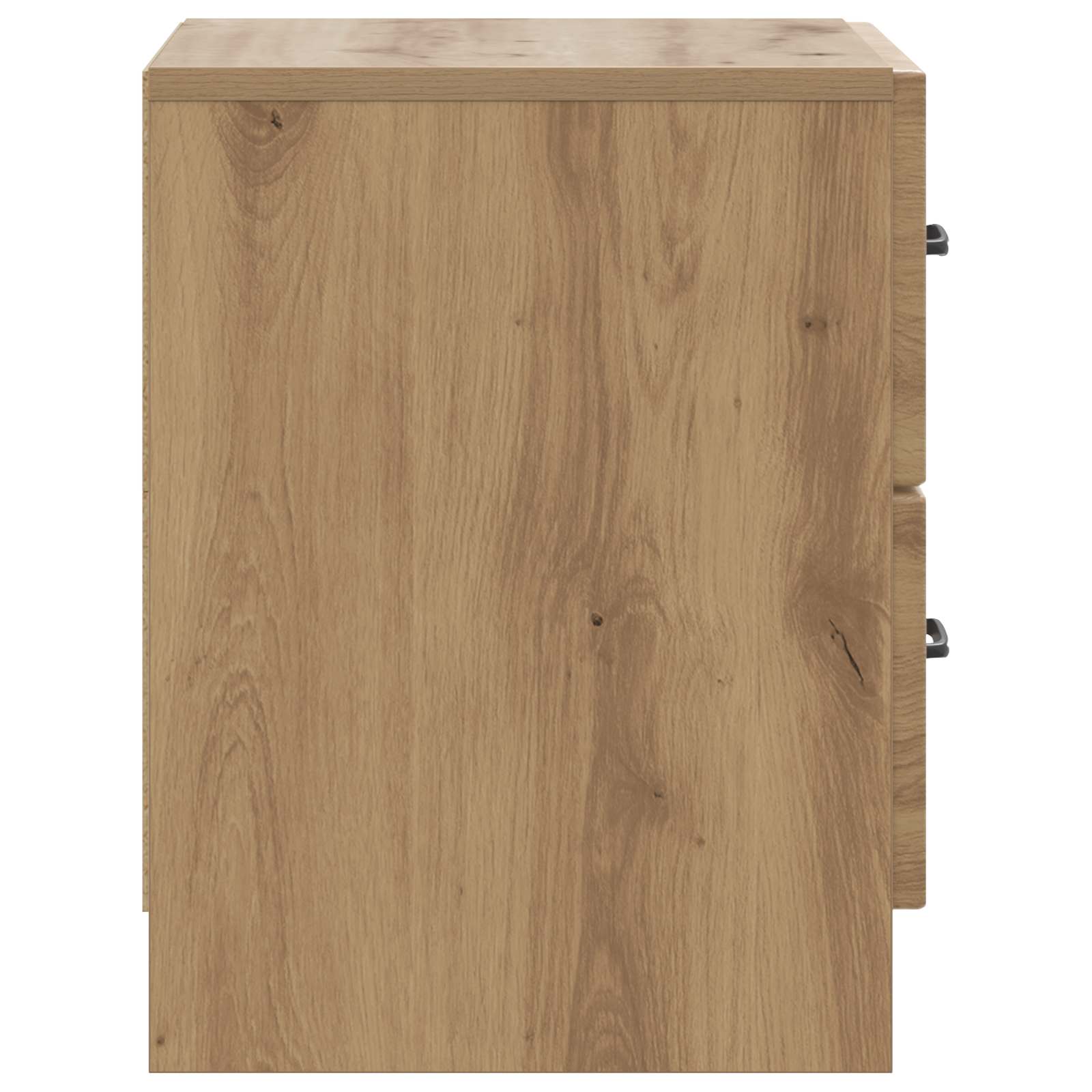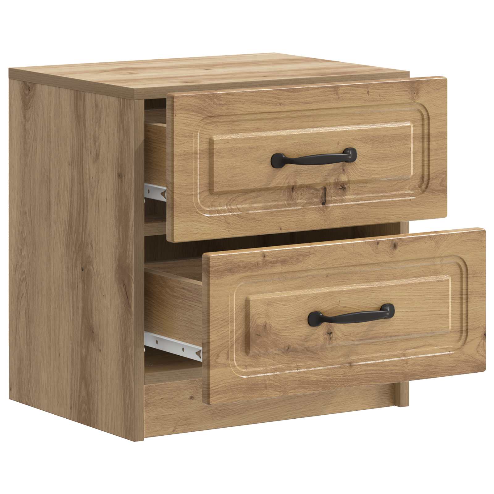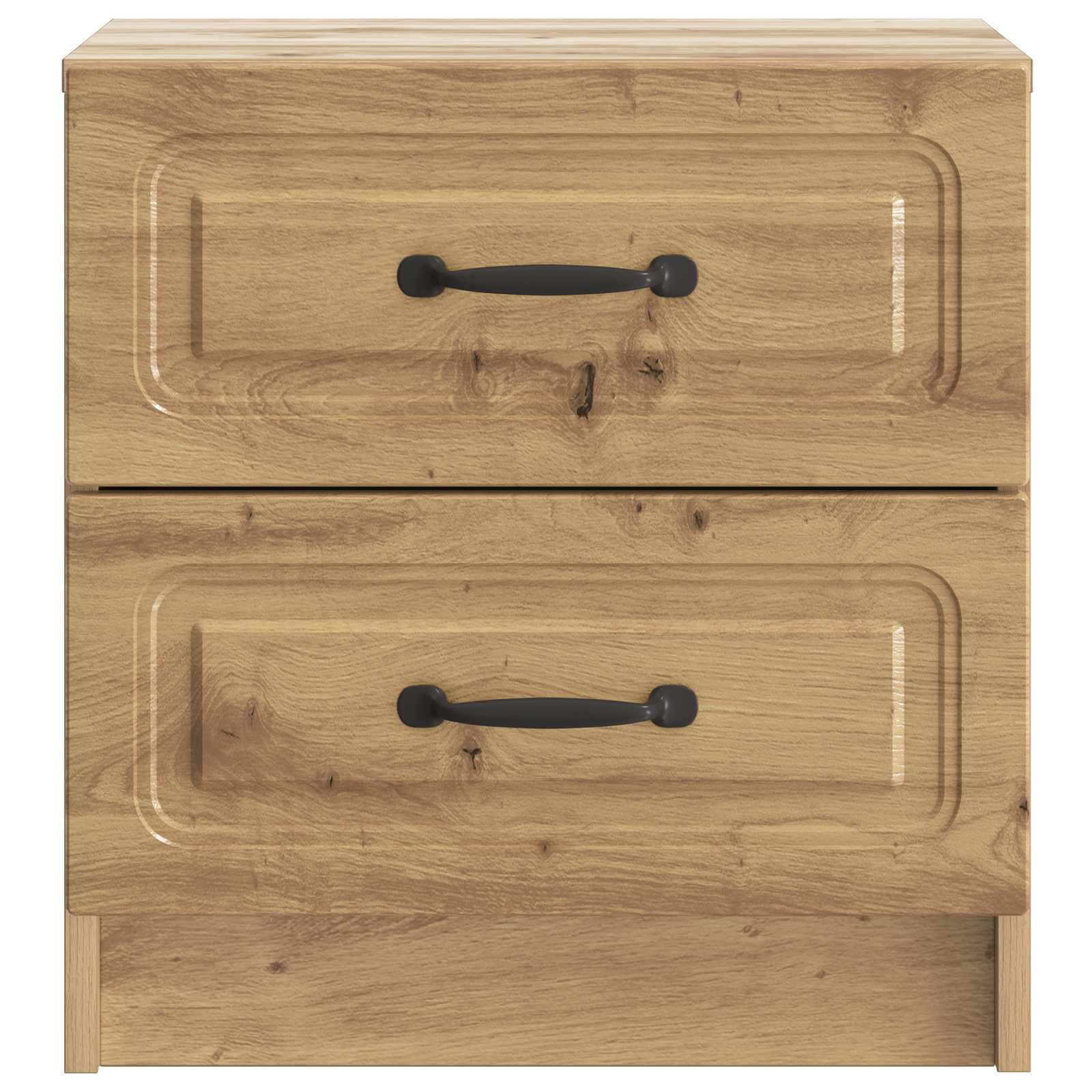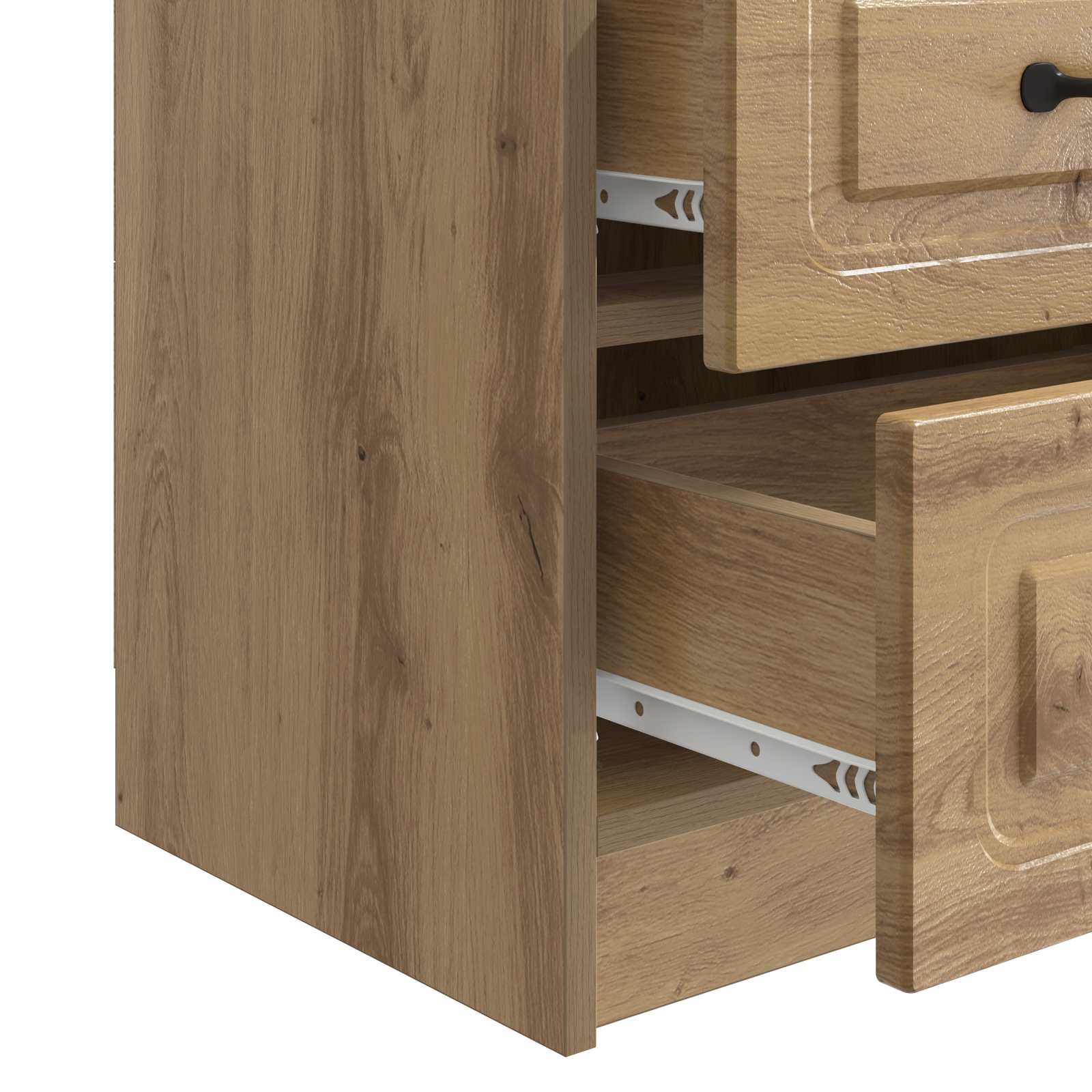 Tale elegantna nočna omarica ima vintage efekt, kar je funkcionalen in stilski dodatek za tvojo spalnico. Njena kompaktna in pravokotna oblika brez napora dopolni vsak prostor ter prinese malo retro šarma v okolico. Hkrati se odlično poda različnim dekoracijam, ponuja udobje ob postelji in malce nostalgije. Super je za shranjevanje knjig, naprav in nočnih potrebščin – njen slog jo naredi za nujen dodatek v vsakem domu. Inženirski les: Vsaka nočna omarica je narejena iz kakovostnega inženirskega lesa, kar ji daje trdnost in robustnost za notranjo uporabo. Ta material je znan po svoji dolgotrajnosti in sposobnosti, da prenese vsakodnevno rabo, kar je perfektna izbira za trajnost pohištva. Elegantni baročni ročaji: Ta nočna omarica ima črne baročne ročaje, ki ne samo da poudarjajo njeno sofisticiranost, ampak zagotovijo tudi enostavno odpiranje predalov, kar pomeni, da je uporaba udobna in priročna. Obilen prostor za shranjevanje: Znotraj omarice je prostoren prostor, ki je idealen za urejanje tvojih osebnih stvari, knjig ali budilke. Ta prostor pomaga, da ohraniš svojo površino brez nereda ter da so tvoje nujne stvari vedno pri roki. Vsestranska vintage zasnova: Vintage dizajn se ti bo zlil s številnimi stilom spalnic in bo prostoru dodal brezčasen čar. Ta vsestranski kos ne le da izpolnjuje funkcijo shranjevanja, temveč je tudi oblikovni element, ki zaokroži videz in občutek tvoje sobe. Enostavno vzdrževanje: Ohraniti eleganten videz omarice je enostavno, saj jo lahko enostavno obrišeš z vlažno krpo. Tako poskrbiš, da ostane v super stanju in se prilega tvojemu domu dlje časa.