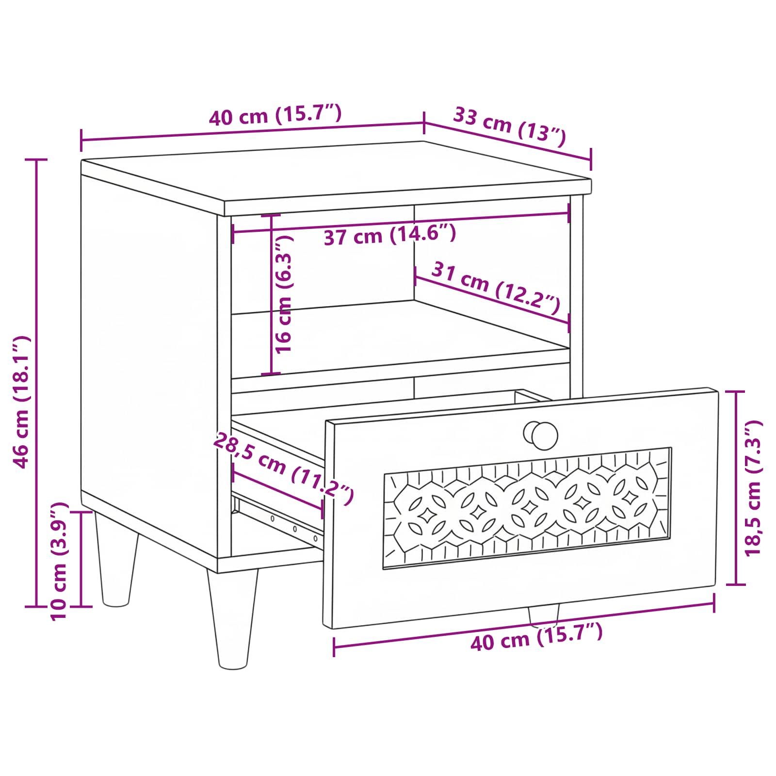 Ta nočna omarica iz trdnega lesa je res čudovit spoj rustikalnega šarma in praktične uporabnosti, kar bo res popestrilo vzdušje vaše spalnice. Narejena, da postane vaš zanesljiv partner ob postelji, se ponaša z enostavno a elegantno zasnovo, ki zadostuje tako estetskim kot funkcionalnim potrebam. Trdne teksture in naravna lesena površina ustvarjajo prijeten in vabljiv prostor ter nudijo dovolj prostora za shranjevanje vaših osebnih predmetov. S svojo elegantno linijo in zemeljskimi toni je ta omarica popoln dodatek v vsakem prostoru. Materiali: Narejena iz trdnega akacijevega lesa, ta nočna omarica ima robustno konstrukcijo, ki zagotavlja dolgo življenjsko dobo in vzdržljivost. Naravni vzorci akacije prinašajo toplino v prostor in ustvarjajo mirno okolje v vaši spalnici. Oblikovana z inženirskim lesom, nudi močno podporo za funkcionalnost. Vključene komponente: Zasnovana s prostornim tradicionalnim predalom, nudi ta omarica dovolj prostora za shranjevanje esencial, bodisi za naprave, bralno gradivo ali nočne potrebščine. Predal se odprti s konvencionalnim ročajem, kar omogoča enostaven in zanesljiv dostop do vaših stvari. Funkcije / Oblikovanje: Zasnovana za vzdržljivost, ta rustikalni kos bo zdržal čas in redno uporabo. Njegov rustikalni stil poudarja naravno lepo obliko, medtem ko gladka površina dodaja vizualni interes, kar povezuje sodobnost s praktičnostjo. Priporočena uporaba: Idealna kot nočna omarica, služi lahko tudi kot majhna stranska miza v dnevni sobi ali pisarni, saj nudi priročen prostor za svetilke, dekorativne predmete ali budilko. Njena privlačnost dopolnjuje različne notranje stile in izboljšuje tako tradicionalne kot moderne dekoracije. Skrb in vzdrževanje: Enostavna za vzdrževanje, samo redno brišite površino z suho krpo. Za globinsko čiščenje uporabite blag čistilnik za les. Izogibajte se ostrim čistilom, da ohranite njen sijaj in naraven videz. Previdno ravnanje podaljšuje življenjsko dobo omarice, kar ji daje zanesljivost v vašem domu.