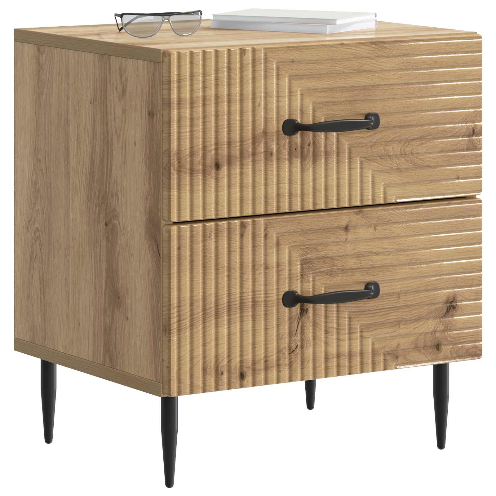 Ta moderna nočna omarica je ravno pravšnja, da vaši spalnici doda organizacijo in vintage šarm. Odlično dopolnjuje različne stile, ker ponuja mesto za vaše osebne stvari, luči ali budilko. S svojo enostavno privlačnostjo ne samo, da zadostuje shranjevanju, ampak tudi ustvarja prijetno vzdušje s klasičnim pridihom. Konstrukcija iz inženirskega lesa Ta omarica je popolnoma narejena iz inženirskega lesa, kar zagotavlja trdno strukturo in dolgo življenjsko dobo. Izbrani materiali so zanesljivi in odporni na hojo dneva v dan, kar pomeni, da boste uživali v pohištvu, ki bo trajalo. Gladke površine so enostavne za čiščenje in vzdrževanje. Obilen prostor za shranjevanje Z večjimi predali ta nočna omarica nudi dovolj prostora za vse, od knjig in očal do telefonov in polnilcev. Predali so zasnovani tako, da ostanejo prazni in organizirani, kar ohranja prostor brez nereda. Zožene kovinske noge Opremljena z zoženimi nogami iz kovine, vsaka noga zagotavlja stabilnost in doda moderen videz. Te noge so zasnovane tako, da zdržijo težo in ohranjajo strukturo, kar vam nudi mir pri vsakodnevni uporabi. Palice za ročno odpiranje Elegance teh ročajev dodaja stilu vaših predalov. Dolgi in ravni ročaji omogočajo enostavno odpiranje ter zapiranje predalov brez težav. Vintage stil Ta nočna omarica prinaša vintage šarm v vašo spalnico s tako klasično zasnovo, ki privlači vse, ki želijo povezati moderno funkcionalnost s starinsko eleganco, kar vaš prostor povzdigne v stilsko oazo.
