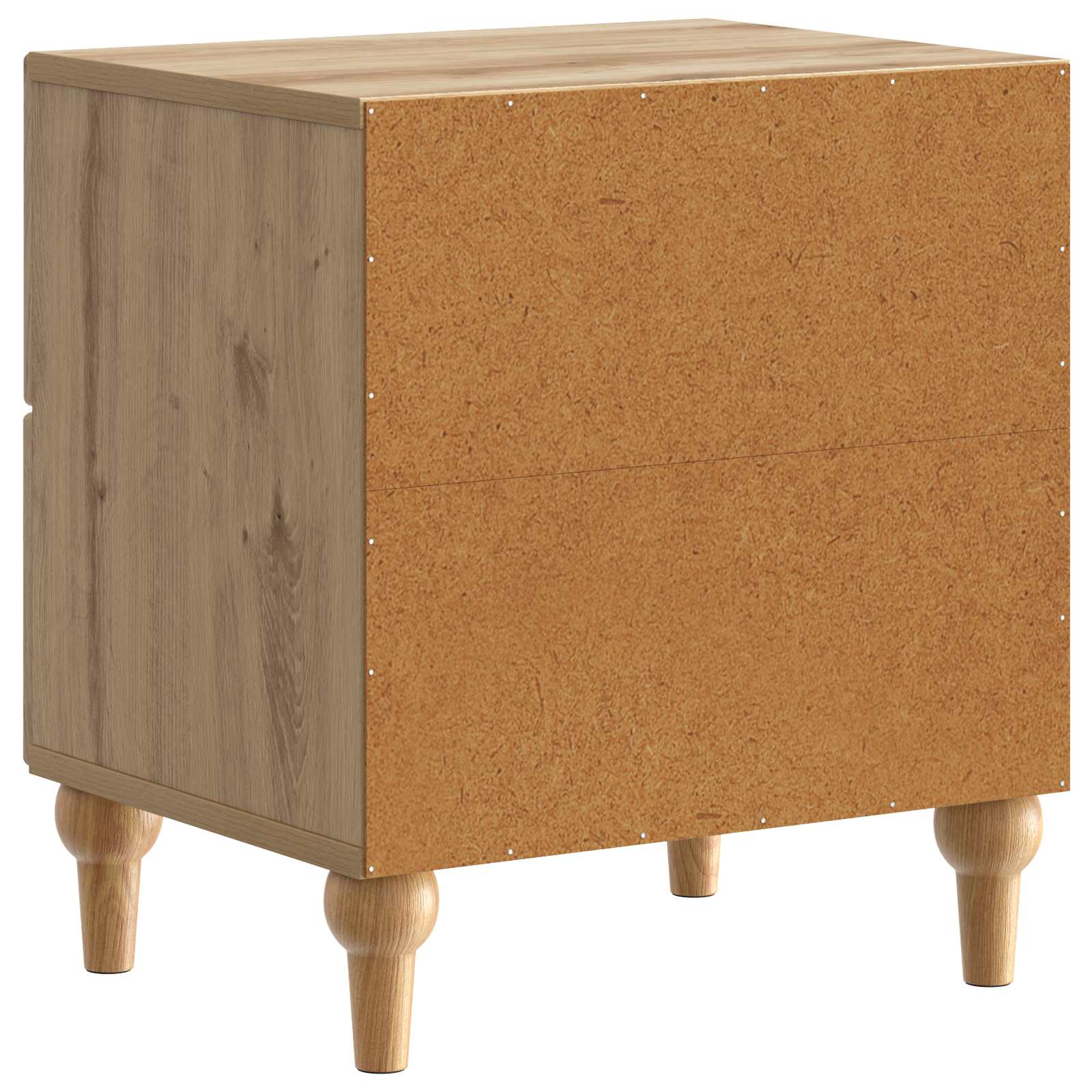 Ta moderna nočna omarica je super dodatek v vsako sobo, saj se ponaša s sodobno pravokotno obliko in čistimi linijami, značilnimi za aktualen dizajn. Njena posebna oblika, s subtilnim robom, ji omogoča, da se brez težav poda v različne teme okrasitve. Dimenzije 43 x 34,5 x 48 cm nudijo dragoceno površino ob postelji ali v dnevni sobi za lampe, knjige in druge nujnosti. Njena preprostost je idealna za tiste, ki imajo radi stil in funkcijo, kar jo naredi za popolno izbiro za sodobne bivalne prostore. Gradnja iz inženirskega lesa Ta omarica je narejena iz inženirskega lesa, kar ji daje robustno in zanesljivo strukturo, ki prenese vsakodnevno obrabo. Njena gladka površina še povečuje estetsko privlačnost, hkrati pa zagotavlja trajnost, zaradi česar je zares vrhunska izbira za vsako sobo. Praktični predali Z dvema predaloma, omarica ponuja dovolj prostora za shranjevanje osebnih stvari in ohranja prostor urejen. Predali se gladko odpirajo, kar omogoča enostaven dostop do potrebščin in preprečuje nered. Preprosti ročaji z gumbom Ročaji na predalih so zasnovani kot preprosti gumbi, kar izboljšuje eleganten in sodoben videz omarice. Ti ročaji so funkcionalni ter estetski, kar omogoča enostavno odpiranje in zapiranje ter dodaja subtilen pridih elegance. Enostavno vzdrževanje Da omara ohrani svoj brezmadežen videz, jo preprosto obrišite z vlažno krpo, da odstranite prah in umazanijo. Ta preprost postopek vzdrževanja ohranja pohištvo videti novo in podaljšuje njegovo življenjsko dobo. Večnamenska uporaba Čeprav je odlična kot nočna omarica, njena večnamenska zasnova omogoča uporabo v različnih prostorih. Kompaktne dimenzije ji omogočajo udobno prilegajo v manjših prostorih, kjer služi kot pomoč pri shranjevanju ali estetski dodatek.