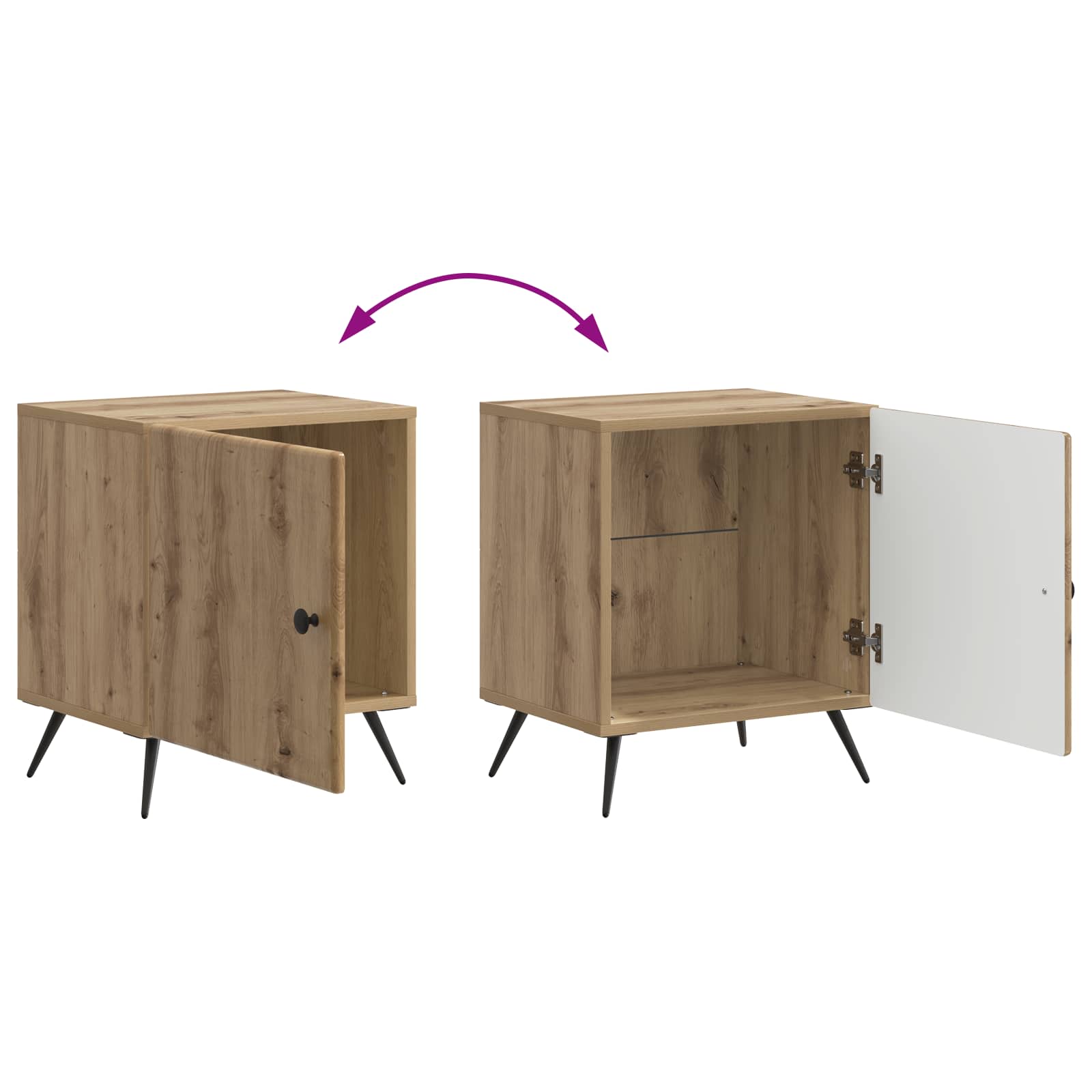 Ta moderna nočna omarica združuje vintage slog in sodobno funkcionalnost. Zasnovana je v pravokotni obliki, kar omogoča enostavno prileganje v vsak prostor, obenem pa ponuja dovolj prostora za shranjevanje vaših osebnih predmetov, nočne svetilke ali budilke. Njena končna obdelava iz inženirskega lesa jo naredi predvsem trpežno in elegantno, kar je super dodatek v vsakem bivalnem prostoru. Material inženirski les daje trdno osnovo in elegantno izbiro, ki se popolnoma ujema z različnimi stili dekoracije. Zahvaljujoč svoji odpornosti je ta material prava izbira za dolgotrajno uporabo. Obilo prostora za shranjevanje omogoča enostavno organizacijo vaših stvari s prostornim predelom in dostopnim predalom. To je idealno za tiste, ki uživajo v urejenem in čistem prostoru brez nereda. Vključeni elementi kot so gumbe in vrata, ki se obračajo za 90°, ponujajo enostaven dostop in zanesljivost. Vse sestavine so zasnovane za izboljšanje izkušnje in elegantno dopolnjujejo celotni videz. Vsestrana uporaba jo naredi idealno kot nočno omarico ali stransko mizico. Njena večfunkcionalna zasnova zadostuje različnim potrebam in konfiguracijam prostora. Navodila za nego preprosto obrišite z vlažno krpo, da jo ohranite v odličnem stanju. Ta enostavnost vzdrževanja zagotavlja, da pohištvo ostane privlačno in očarljivo skozi leta.