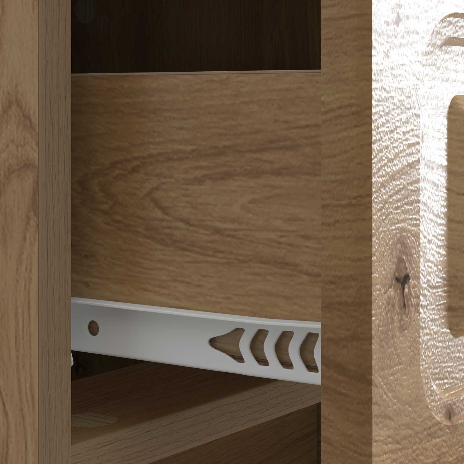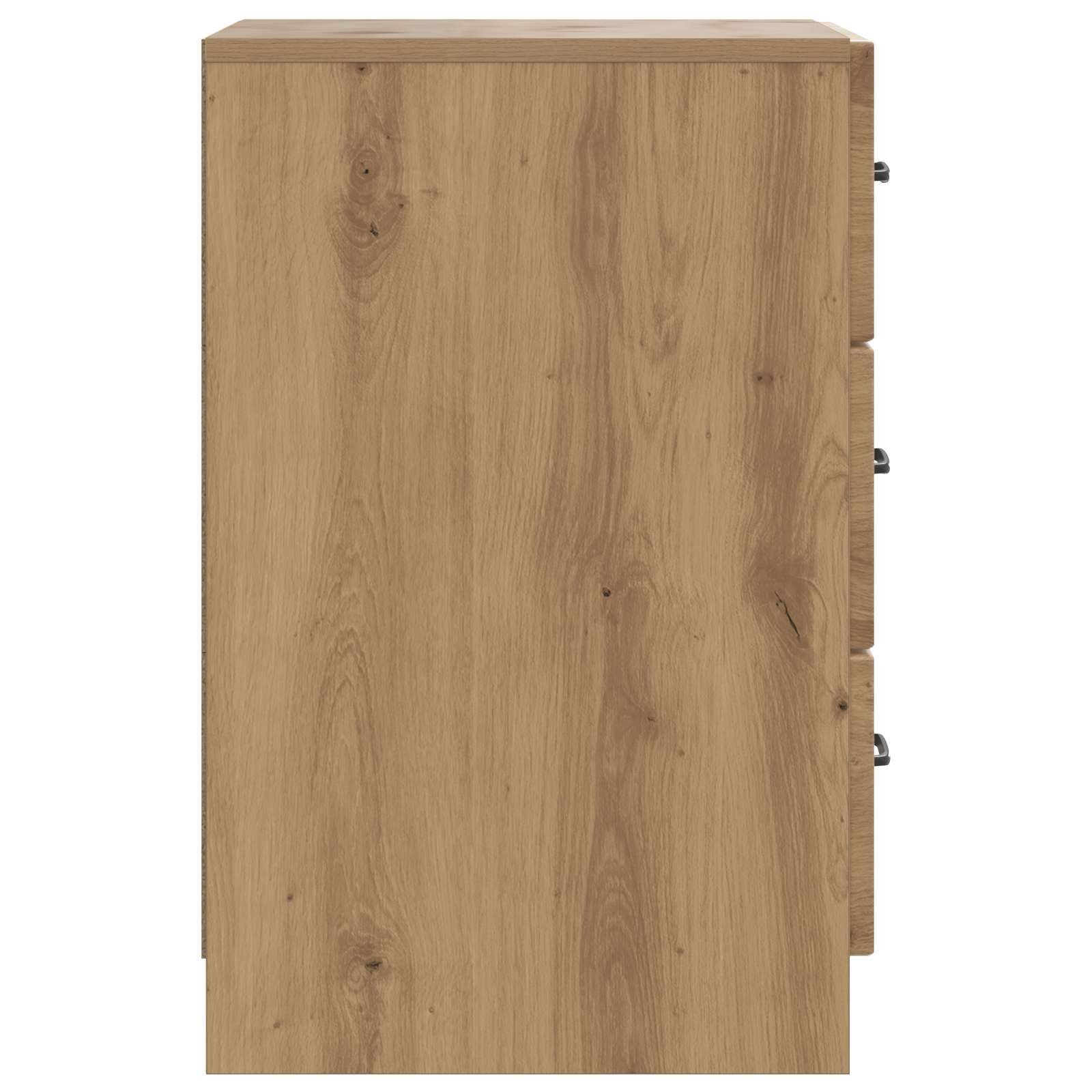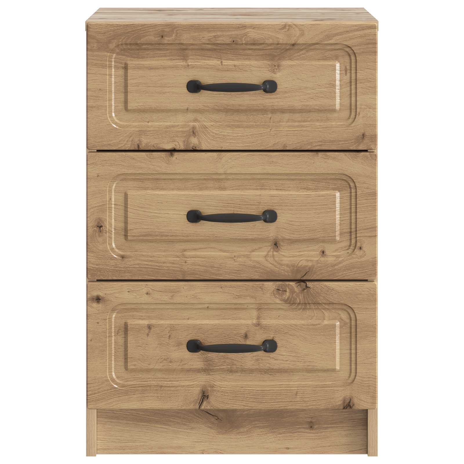 Moderna nočna omarica je nujni kos za vsako spalnico, saj nudi tako slog kot funkcionalnost. Njena vintage oblika, ki prinaša duh preteklosti, brez truda dvigne vse vrste dekoracij. Oblika je kompaktna in odlična za poleg postelje, saj je popolna za shranjevanje nujnih stvari, kot so svetilke, budilke ali osebni predmeti. Končna obdelava iz inženirskega lesa zagotavlja robustno in šik površino, medtem ko črni ročaji dodajajo moderen izgled. Ta omarica je odlična izbira za vsako spalnico. Visokokakovostni materiali Izdelana iz inženirskega lesa, ta nočna omarica nudi moč in lepo estetiko, ki zagotavlja gladek zaključek. Material je enostaven za čiščenje – le z vlažno krpo jo obrišite in ostane v brezhibnem stanju. Prostor za shranjevanje Zasnovana je z obilo prostora za shranjevanje, saj predali omogočajo dovolj prostora za vse vaše stvari, kar poenostavi organizacijo. Prostoren notranji del lahko shranjuje vse, od knjig do elektronike, zato imate vse, kar potrebujete ponoči, na dosegu roke. Sličen dizajn Vintage slog z modernim pridihom omogoča, da se ta omarica brez težav vklopi v različno spalno dekoracijo. Ročaji v obliki palice nudijo elegance in minimalističen videz, ki doda celotno estetiko. Enostavna sestava Omarica vsebuje preprost postopek sestavljanja, potrebujete le izvijač, kladivo, merilni trak in vrtalnik. Dva človeka jo lahko hitro sestavita, kar zagotavlja hitro namestitev. Enostavna nega Vzdrževanje te omarice je preprosto in zahteva le redno brisanje prahu. Za globinsko čiščenje jo lahko nežno obrišete z vlažno krpo, pri čemer se izogibajte strojnim kemikalijam, da ne poškodujete površine.