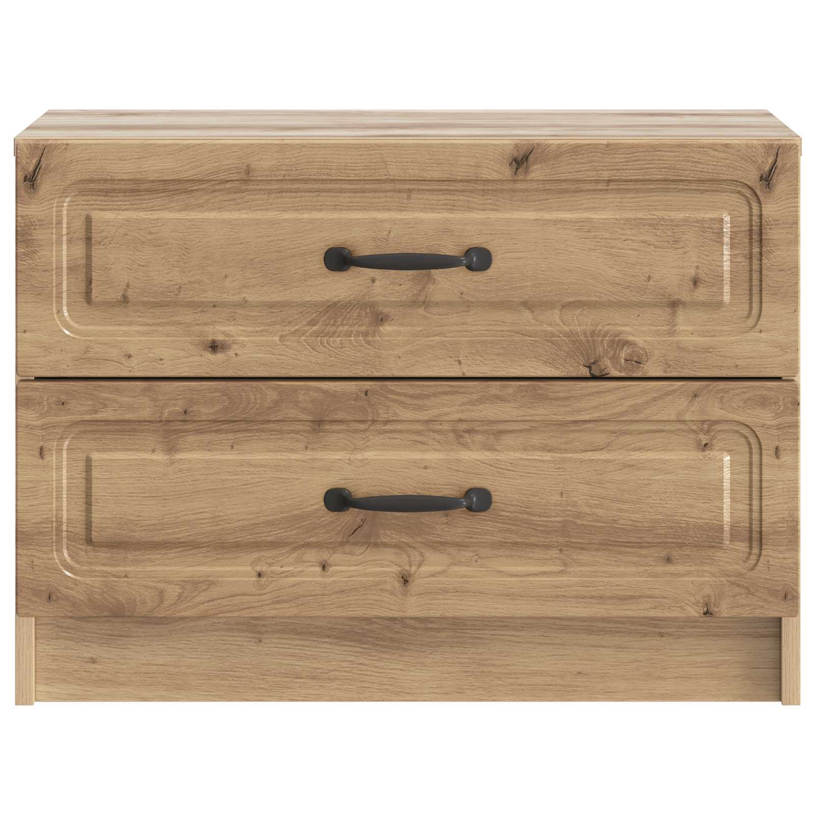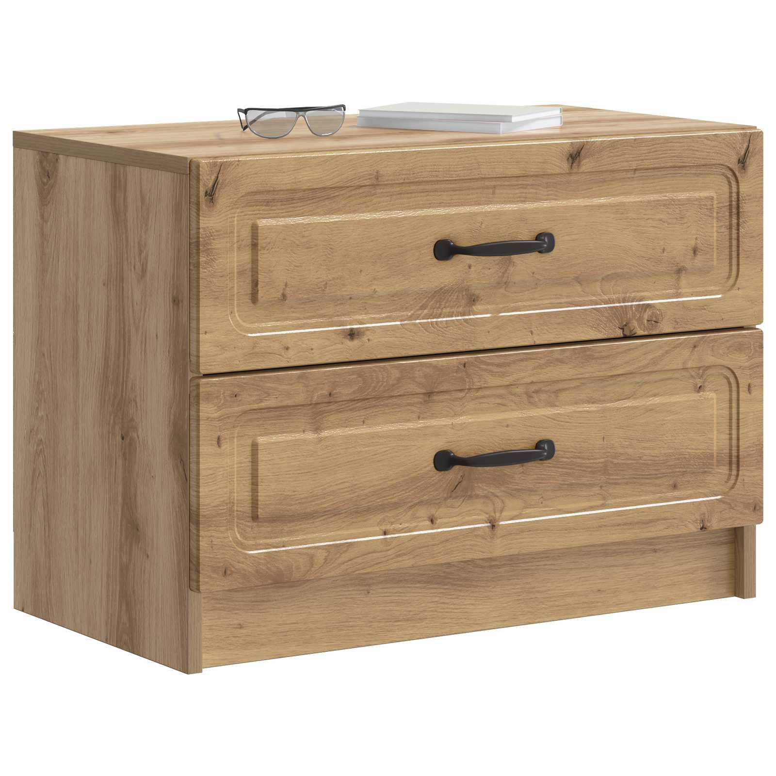 Ta moderna nočna omarica je odlična kombinacija vintage sloga in uporabnosti, popolna za vsak spalni prostor. Njen pravokoten dizajn in privlačna oblika jo naredijo za super dodatek v vašem prostoru. Ima sofisticiran izgled, ki dopolnjuje in izboljšuje različne stilne dekoracije. Ponuja udobje in funkcionalnost, kar olajša personalizacijo vaše spalnice. Njena prisotnost zagotavlja funkcionalno shranjevanje in estetsko dvigo vašega prostora. Trden inženirski les: Ta nočna omarica, narejena iz inženirskega lesa, ponuja zanesljivost. Njena robustna konstrukcija zagotavlja stabilnost in eleganten videz, primeren za moderni stil. Ročaji: Elegantni črni ročaji dodajajo malce šarma in omogočajo lahek dostop do shranjevanja, kar povečuje udobnost pri uporabi. Prostor za predale: Opremljena z obilnim prostorom za predale, ta omara ponuja prostor za knjige, očala ali nočne potrebščine. Njena prostorna zasnova omogoča enostavno organizacijo, tako da so stvari vedno pri roki. Večnamenska zasnova: Vintage videz te omare se brez težav ujema z različnimi stili dekoracije. Lepo deluje v tradicionalnih, eklektičnih ali minimalističnih prostorih, kar dodatno izboljšuje vzdušje. Enostavno vzdrževanje: Za enostavno vzdrževanje je dovolj, da jo obrišete z vlažno krpo, kar vam prihrani težave in zagotavlja čist in negovan videz.