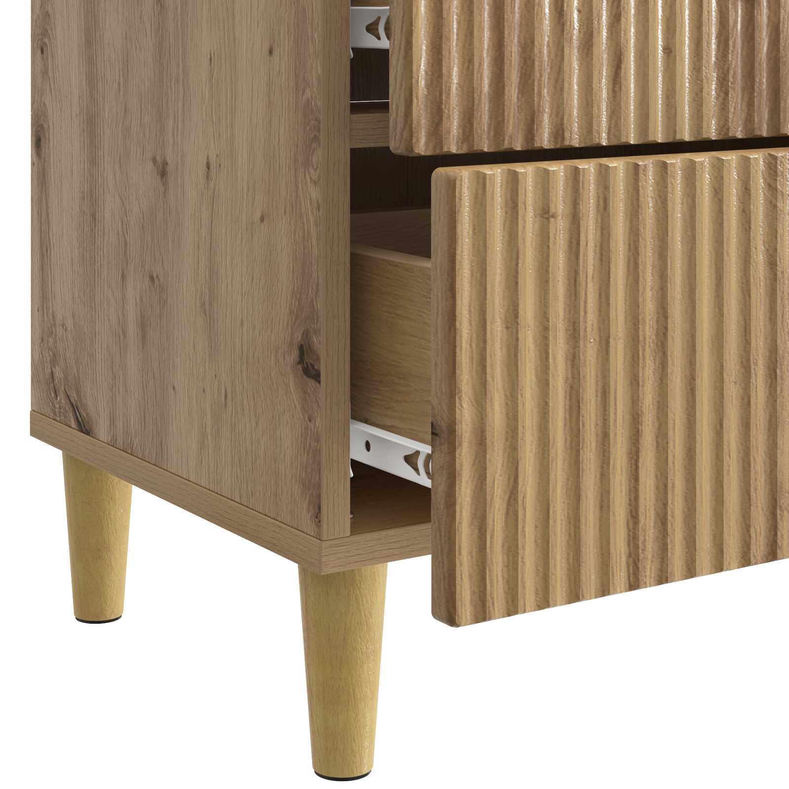 Ta moderna nočna omarica združuje vintage slog in funkcionalno zasnovo, kar jo naredi odlično izbiro za vsako spalnico. Narejena iz trpežnega inženirskega lesa, nudi kompaktno rešitev za shranjevanje. Njena pravokotna oblika se lepo vklopi v različne stile notranje ureditve in izboljša izgled spalnice, hkrati pa služi za organizacijo osebnih stvari. Trajnosten inženirski les: Ta nočna omarica je bila narejena iz inženirskega lesa, kar ji daje dolgo življenjsko dobo in stabilnost. Odpornost na obrabo in vlago zagotavlja, da ostane nedotaknjena leta, kar jo dela praktično naložbo. Robustne rjavice: Podprta z močnimi nogami iz inženirskega lesa, omarica stoji stabilno na različnih površinah. Njena bogata rjava barva dodaja kanček elegance in ustvarja prijetno atmosfero. Prostorni predali: Z dovolj prostora za vse nujne stvari, ponuja ta omarica priročno mesto za knjige in nočne potrebščine. Z lahkim mehanizmom odpiranja je dostop preprost in povečuje uporabnost. Večnamenska uporaba: Ta kos se lahko enostavno preoblikuje iz nočne omarice v končno mizo ali dekorativni stojak, kar omogoča prilagodljivost za različne potrebe spalnice. Enostavno vzdrževanje: Samo obrišite z vlažno krpo in omarica bo videti vedno sveže, brez dodatnega truda.