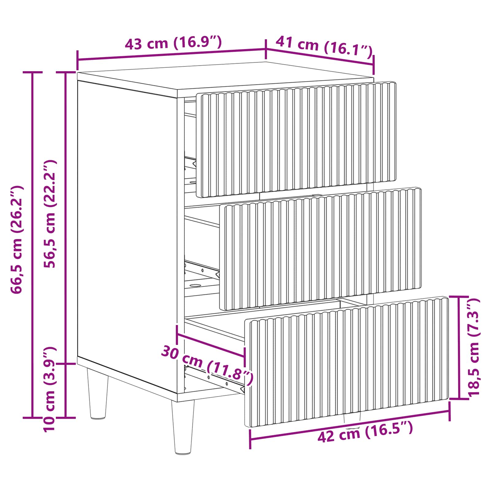- Splošne dimenzije: 43 x 41 x 66,5 cm (D x Š x V)
