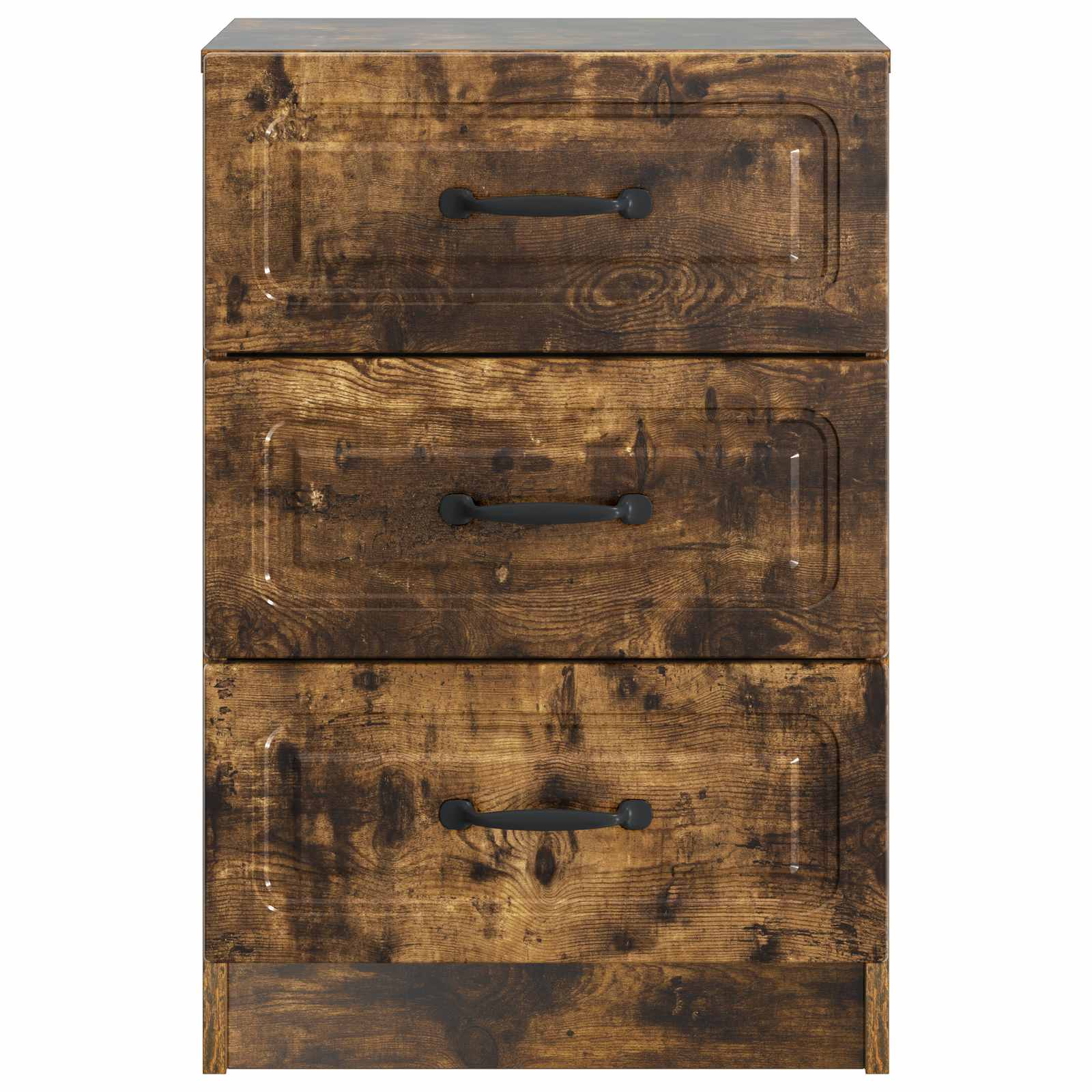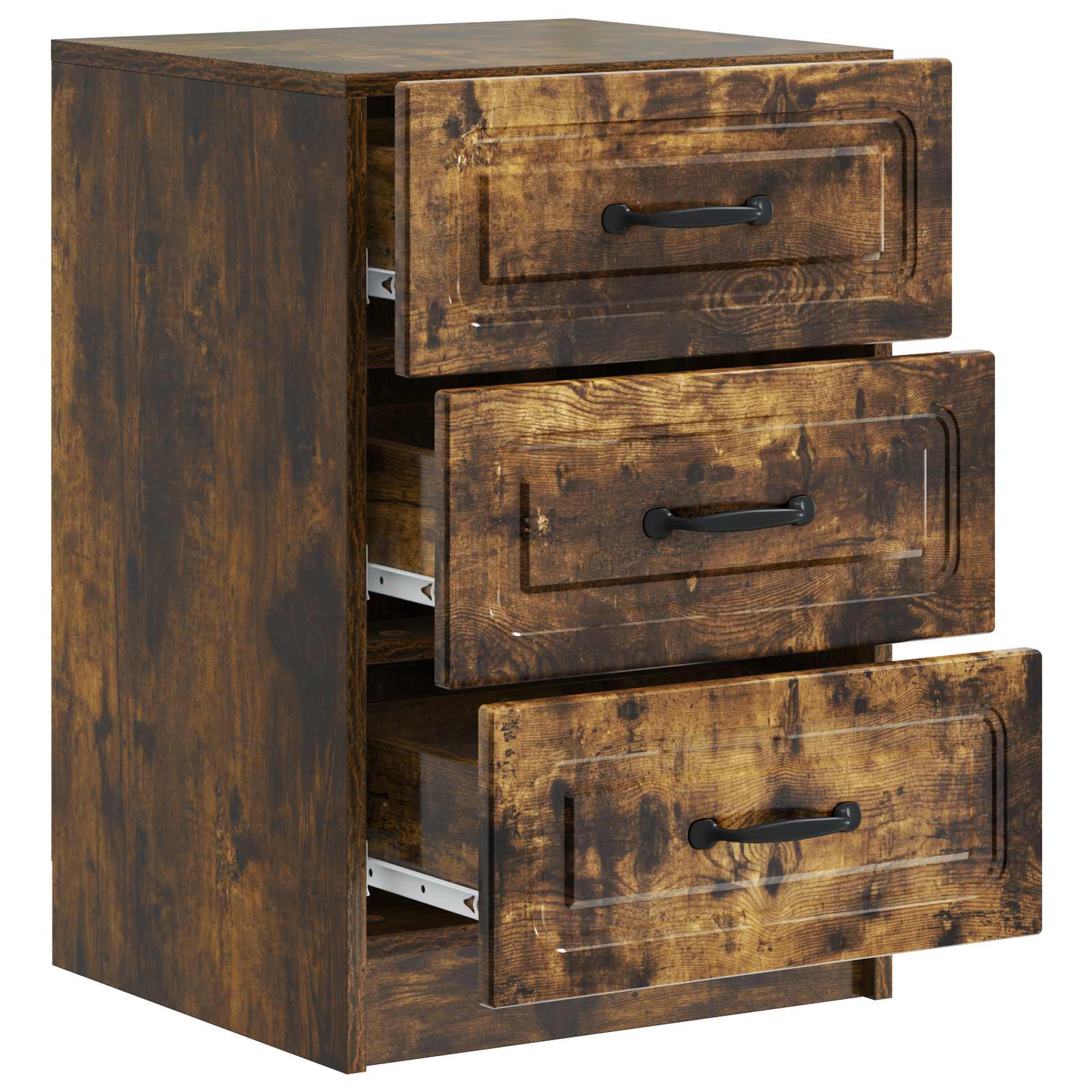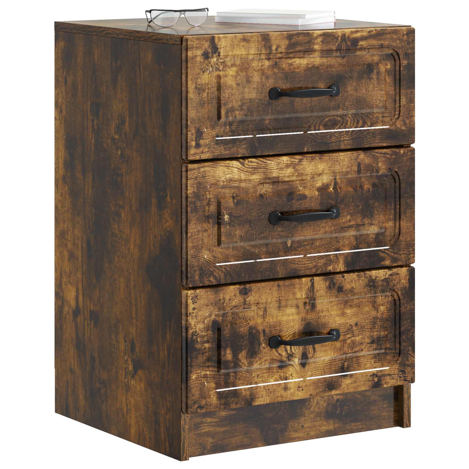 Moderna nočna omarica je nujni kos za vsako spalnico, saj nudi tako slog kot funkcionalnost. Njena vintage oblika, ki prinaša duh preteklosti, brez truda dvigne vse vrste dekoracij. Oblika je kompaktna in odlična za poleg postelje, saj je popolna za shranjevanje nujnih stvari, kot so svetilke, budilke ali osebni predmeti. Končna obdelava iz inženirskega lesa zagotavlja robustno in šik površino, medtem ko črni ročaji dodajajo moderen izgled. Ta omarica je odlična izbira za vsako spalnico. Visokokakovostni materiali Izdelana iz inženirskega lesa, ta nočna omarica nudi moč in lepo estetiko, ki zagotavlja gladek zaključek. Material je enostaven za čiščenje – le z vlažno krpo jo obrišite in ostane v brezhibnem stanju. Prostor za shranjevanje Zasnovana je z obilo prostora za shranjevanje, saj predali omogočajo dovolj prostora za vse vaše stvari, kar poenostavi organizacijo. Prostoren notranji del lahko shranjuje vse, od knjig do elektronike, zato imate vse, kar potrebujete ponoči, na dosegu roke. Sličen dizajn Vintage slog z modernim pridihom omogoča, da se ta omarica brez težav vklopi v različno spalno dekoracijo. Ročaji v obliki palice nudijo elegance in minimalističen videz, ki doda celotno estetiko. Enostavna sestava Omarica vsebuje preprost postopek sestavljanja, potrebujete le izvijač, kladivo, merilni trak in vrtalnik. Dva človeka jo lahko hitro sestavita, kar zagotavlja hitro namestitev. Enostavna nega Vzdrževanje te omarice je preprosto in zahteva le redno brisanje prahu. Za globinsko čiščenje jo lahko nežno obrišete z vlažno krpo, pri čemer se izogibajte strojnim kemikalijam, da ne poškodujete površine.