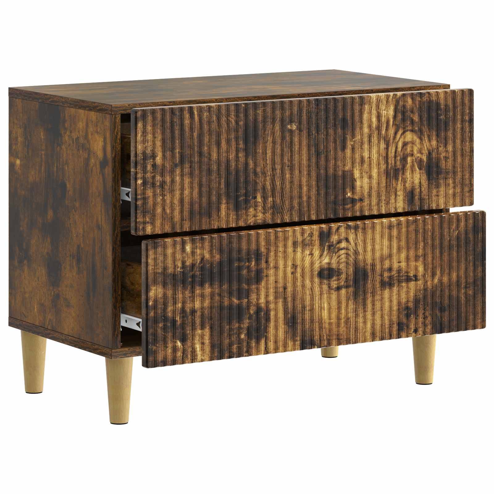 Ta moderna nočna omarica združuje vintage slog in funkcionalno zasnovo, kar jo naredi odlično izbiro za vsako spalnico. Narejena iz trpežnega inženirskega lesa, nudi kompaktno rešitev za shranjevanje. Njena pravokotna oblika se lepo vklopi v različne stile notranje ureditve in izboljša izgled spalnice, hkrati pa služi za organizacijo osebnih stvari. Trajnosten inženirski les: Ta nočna omarica je bila narejena iz inženirskega lesa, kar ji daje dolgo življenjsko dobo in stabilnost. Odpornost na obrabo in vlago zagotavlja, da ostane nedotaknjena leta, kar jo dela praktično naložbo. Robustne rjavice: Podprta z močnimi nogami iz inženirskega lesa, omarica stoji stabilno na različnih površinah. Njena bogata rjava barva dodaja kanček elegance in ustvarja prijetno atmosfero. Prostorni predali: Z dovolj prostora za vse nujne stvari, ponuja ta omarica priročno mesto za knjige in nočne potrebščine. Z lahkim mehanizmom odpiranja je dostop preprost in povečuje uporabnost. Večnamenska uporaba: Ta kos se lahko enostavno preoblikuje iz nočne omarice v končno mizo ali dekorativni stojak, kar omogoča prilagodljivost za različne potrebe spalnice. Enostavno vzdrževanje: Samo obrišite z vlažno krpo in omarica bo videti vedno sveže, brez dodatnega truda.