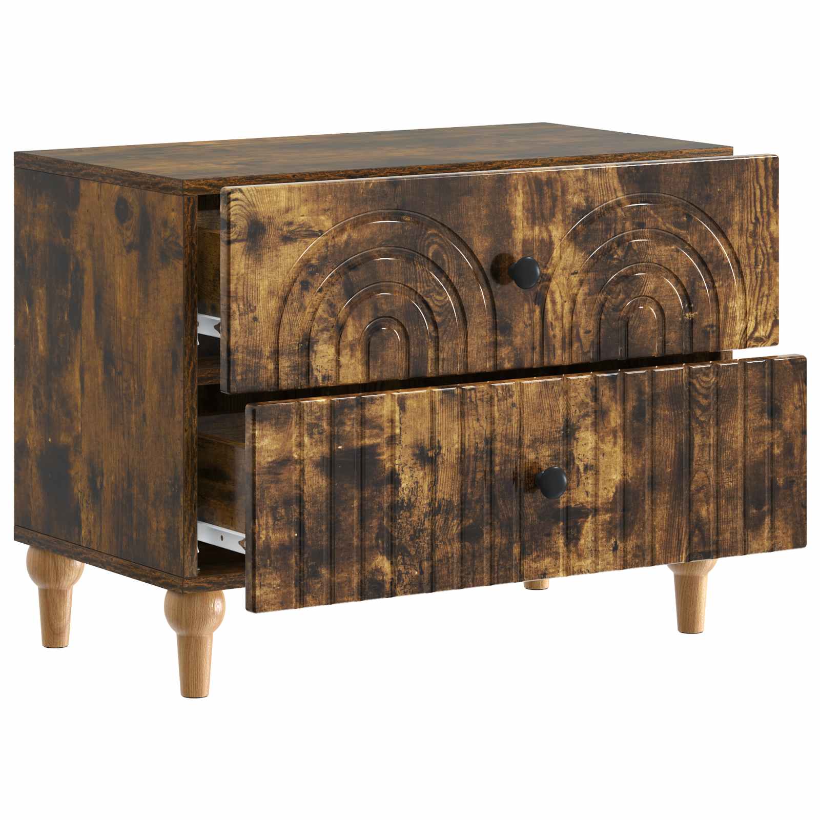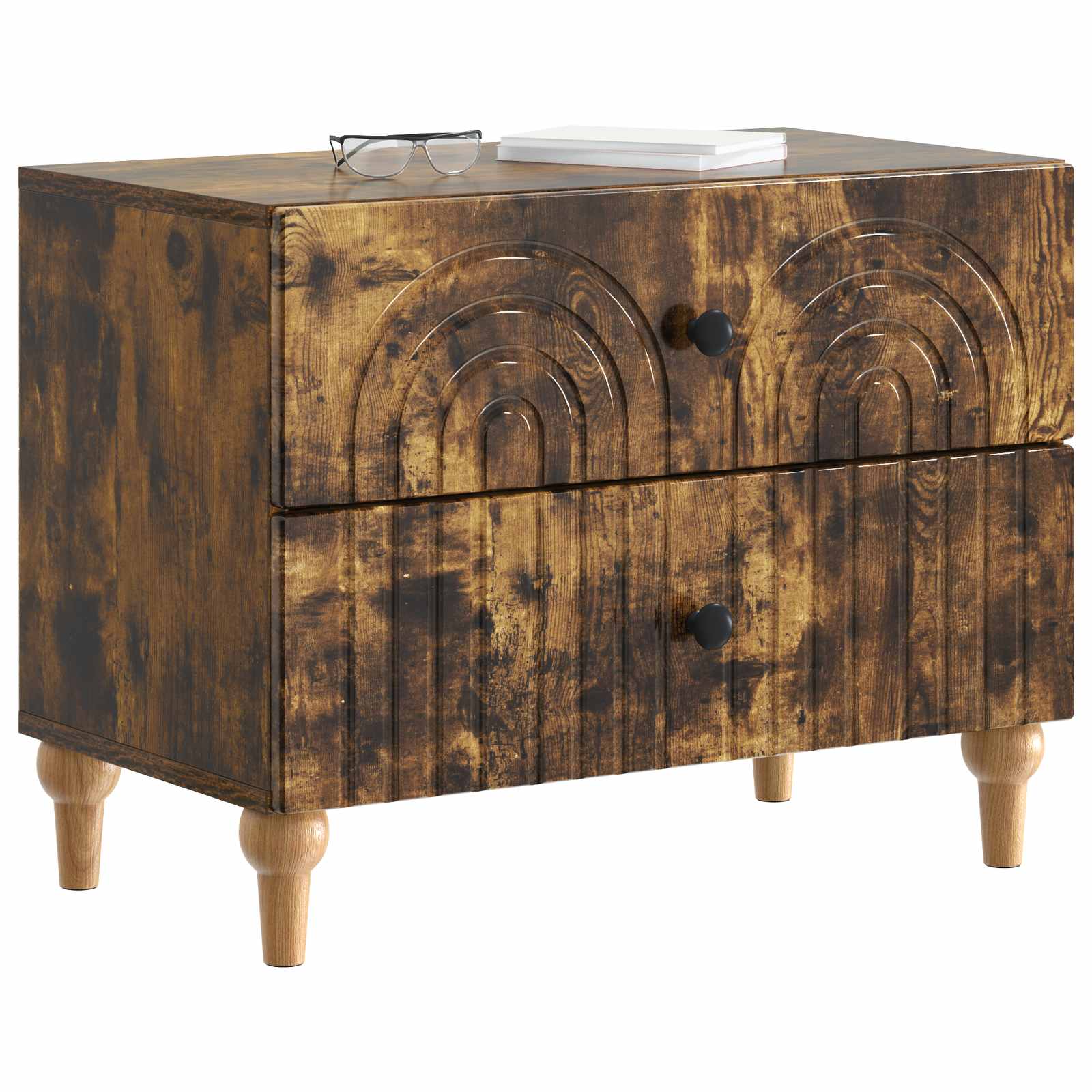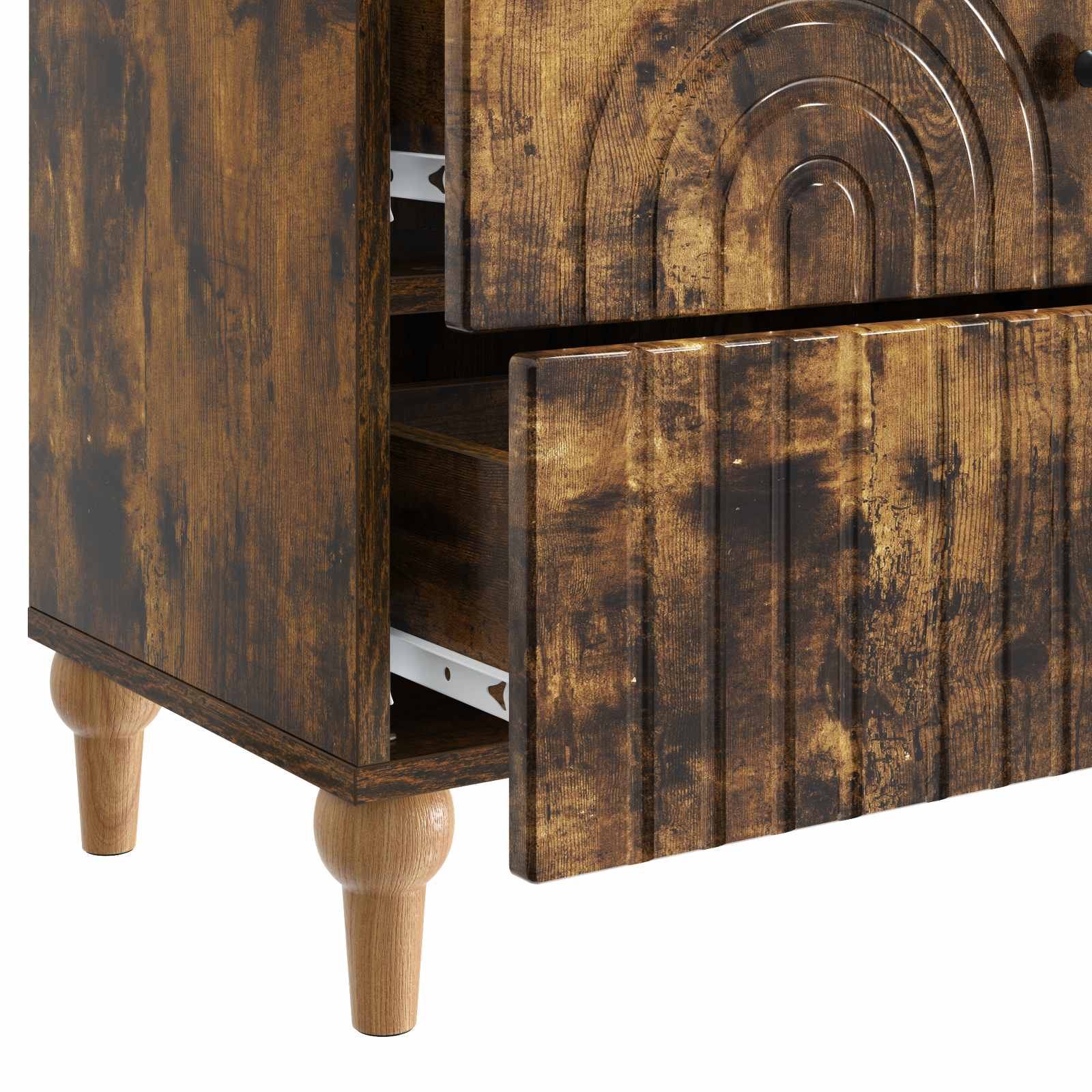 Ta elegantna nočna omarica prinaša moderni stil s svojim pravokotnim dizajnom in črtastim vzorcem. Popolnoma je zasnovana, da doda funkcionalnost in šarm v dnevno sobo ali spalnico, deluje kot odličen spremljevalec postelje, nudi rešitve za shranjevanje ter se lepo ujame z estetiko prostora. Njena minimalistična, a stilizirana oblika se brez težav prilega različnim dekorjem, zaradi česar je vsestranska za sproščene in sofisticirane prostore. Subtilna struktura iz inženirskega lesa daje občutek kakovosti in stabilnosti. Konstrukcija iz inženirskega lesa Ta omarica iz kvalitetnega inženirskega lesa nudi trdnost in privlačen izgled. Izbira materiala zagotavlja, da ostane trda in odporna na vsakodnevno obrabo, kar pomeni zanesljivo službo še dolga leta. Obilne možnosti shranjevanja Zasnovana s predali in elegantnimi gumbi, omarica nudi prostoren prostor za osebne stvari in dodatne potrebščine. Ta dizajn spodbuja organiziranost, kar jo naredi praktičen dodatek k vsakemu domu. Sofisticiran moderen stil Moderna, preprosta zasnova z unikatno črtasto obrobo zagotavlja, da se nočna omarica brez težav prilagaja prostorom z minimalistično estetiko. Zasnovana za uporabnost Ta omarica izboljšuje funkcionalnost prostora. Njena kompaktna velikost omogoča, da se prilega ob posteljo, hkrati pa nudi dovolj površine za svetilke in budilke. Enostavno vzdrževanje Da bi ohranili videz kot nov, preprosto obrišite z vlažno krpo, kar omogoča brezskrbno nego za zaposlene lastnike domov.