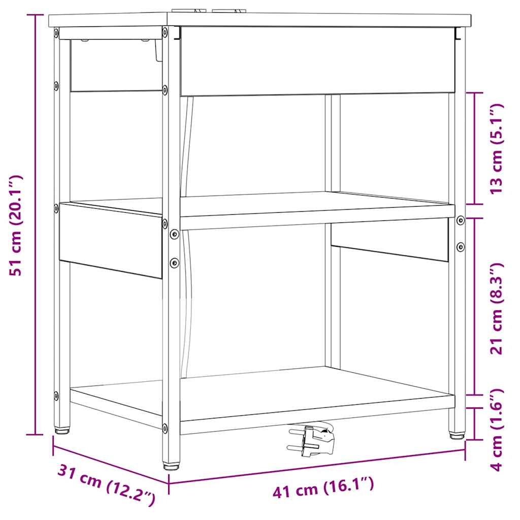 Ta elegantna nočna omarica z rustikalnim pridihom se brez težav vklopi v katerikoli spalni prostor ter ponudi funkcionalnost in stil. Njena pravokotna oblika in robustna konstrukcija zagotavljata zanesljivost za osebne ali dekorativne predmete ter popravita vzdušje v vsakem spalnem prostoru s svojo naravno lepoto. Materiali: Narejena iz zanesljivega inženirskega lesa, ta omarica združuje toplino lesa in moč jeklenih elementov, kar zagotavlja dolgotrajno uporabo brez veliko vzdrževanja. Inženirski les je trden in cenovno ugoden, enostavno čiščenje pa zaradi tega ni problem. Vključene komponente: Police iz plošč so odlična rešitev za shranjevanje, kar pomeni, da so vaši predmeti lepo urejeni. Trdna konstrukcija polic podpira različne predmete, kar zadeva kombinacijo uporabnosti in preprostosti. Jekleni nogi zagotavljata močno podporo in stabilnost, zato omarica ostaja stabilna ne glede na obremenitev. Edinstvene značilnosti: Ta nočna omarica ima vgrajeno polnilno postajo, kar zadostuje sodobnim potrebam in omogoča enostaven dostop za polnjenje vaših elektronskih naprav. Ohranite svoje naprave na dosegu roke in zmanjšajte nered z kabli ali več polnilniki – sprejmite udobje, prilagojeno vsakdanjemu življenju. Priporočena uporaba: Idealna za spalnice, ta omarica (41 x 31 x 51 cm) se odlično prilega poleg postelje, kar nudi hiter dostop do lamp, budilnikov ali osebnih stvari. Njena rustikalna privlačnost pa se ujema z različnimi stili spalnic ter enostavno izboljšuje estetiko in funkcionalnost. Vzdrževanje: Preprosto jo obrišite z vlažno krpo, da ohranite njen videz in odstranite prah. Upoštevajte ta vzdrževanja priporočila, kar zagotavlja, da omarica še naprej opravlja svoj namen brez zapletenih čiščenja postopkov.