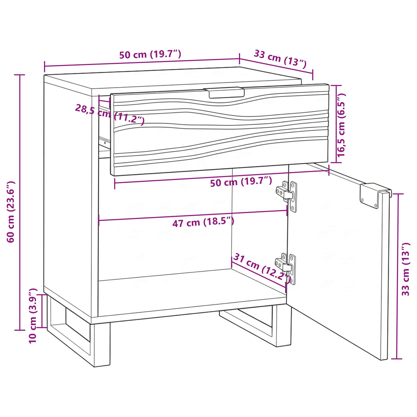Ta nočna omarica iz akacijevega lesa ponuja rustikalni čar, ki prinaša tako stil kot uporabnost v vašo spalnico. Ktorna, majhna nočna omarica združuje lepoto s funkcionalnim shranjevanjem in je nujna za organizacijo ob postelji. Njene gladke površine in naravne barve lesa dvigujejo vzdušje, kar ustvarja miren ambient, primeren za sprostitev. Zamislite si, kako ta kos popestri vašo večerno rutino, tako da drži svetilko, knjigo in osebne stvari na dosegu roke. Trdni materiali: Narejena iz trdnega akacijevega lesa, kar zagotavlja, da je trdna in lepa. Ta izbira materialov zagotavlja dolgo življenjsko dobo ter odpornost na vsakodnevne poškodbe. Akacijev les daje bogato teksturo in naravno toploto, ki doda vrednost spalnici. Praktično shranjevanje: Z obsežnim shranjevanjem, ta omarica vključuje predale za učinkovito organizacijo stvari. Kombinacija odprtih polic in predalov omogoča, da so vaše osnovne stvari vedno uredne in pri roki. Tradicionalni dostop do predalov: Tradicionalni mehanizem predalov omogoča enostavno odpiranje in zapiranje, kar poenostavi uporabo in povečuje učinkovitost shranjevanja. Rustikalni stil: Ta omarica s svojim rustikalnim izgledom se lepo povezuje z različnimi notranjimi stili, od modernih do podeželskega šika, kar obogati prostor in spodbujanja udobje. Vzdrževanje: Da ohranite njen čar, preprosto obrišite površino s suho krpo, brez ostrih dodatkov. Omarica vključuje tudi napravo za pritrditev na steno za dodatno stabilnost in varnost.