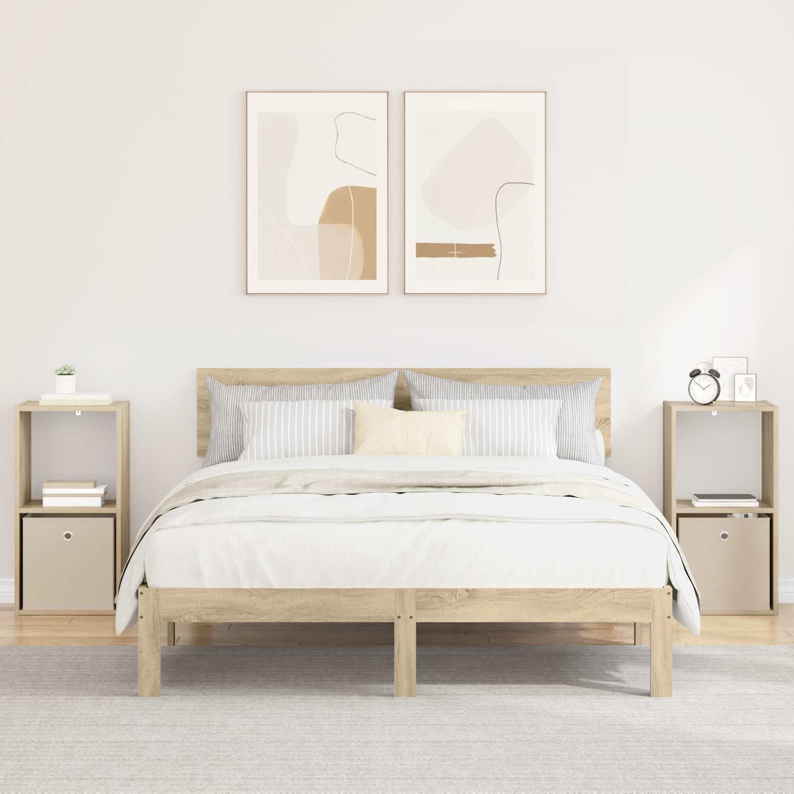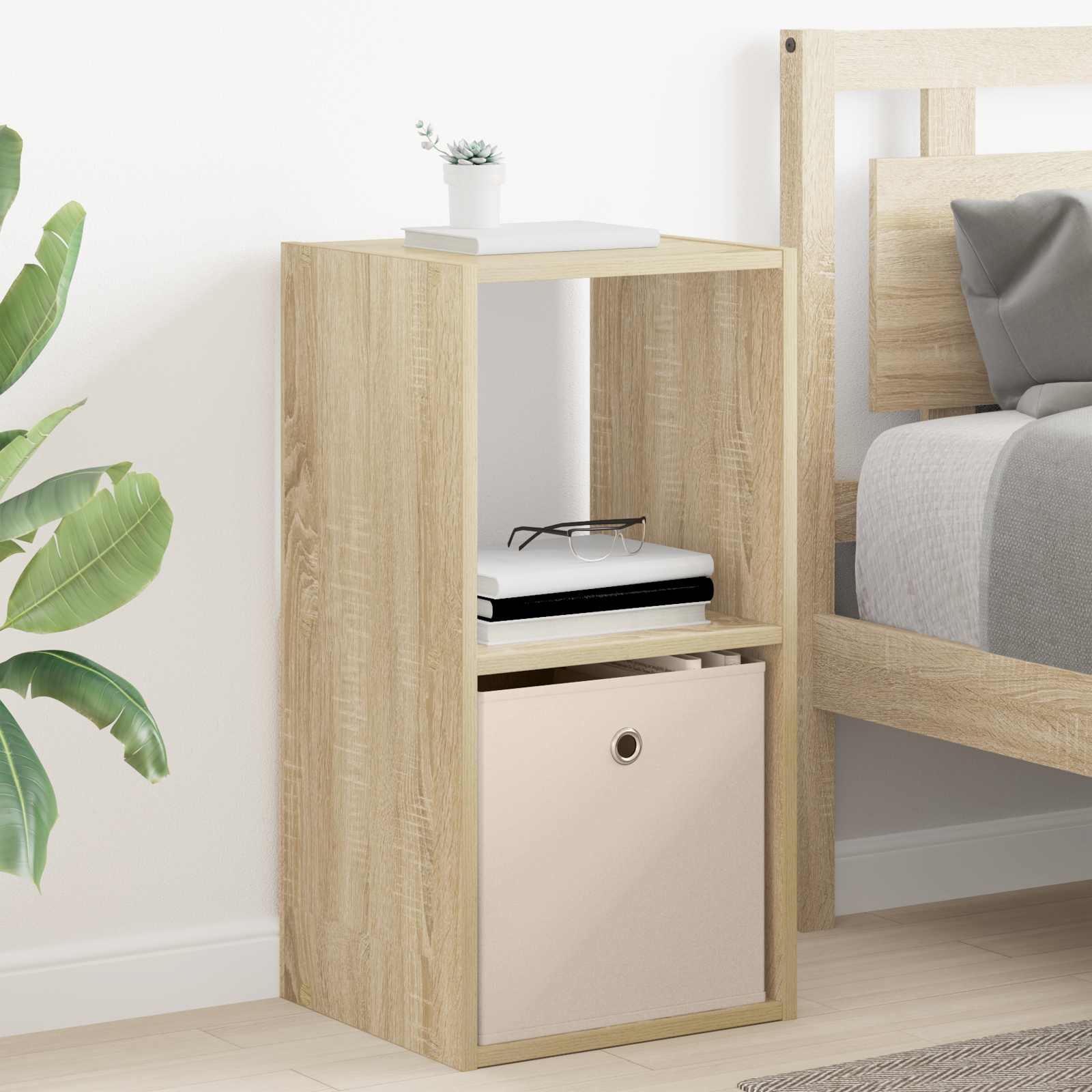 Ta moderna nočna omarica se ponaša s preprostim, a funkcionalnim dizajnom. Ima elegantno pravokotno obliko, ki se lepo prilega vsaki sodobni spalnici. Odlično je zasnovana za shranjevanje ob postelji, saj sprejme luči, budilke in osebne stvari. Je estetsko privlačna, saj je narejena iz inženirskega lesa in ima čiste linije. Postavljena poleg vaše postelje, dvigne celoten stil prostora in služi tako kot funkcionalna rešitev za shranjevanje kot dekorativni element. Vseeno, ali gre za šik sobo ali prijetno spalnico, se brez težav povezuje funkcionalnost in kakovost. Ergonomična oblika in vgrajeni ročaji dodajo prijeten dotik, ki povezuje eleganco z vsakodnevno uporabnostjo. Inženirski les: Ta nočna omarica je izdelana iz inženirskega lesa, kar ji daje dolgo življenjsko dobo in odpornost na vsakodnevno rabo. Material ohranja svoj videz in daje omarici klasičen šarm skozi leta. Ta material je izbran zaradi svoje prilagodljivosti, kar ga naredi popolnega za sodoben življenjski slog, kjer se moč srečuje s stilom. Praktični predali: Z vgrajenimi ročaji ponuja skrbno skrite shranjevalne možnosti. Inovativen dizajn ročajev zagotavlja diskretno površino in enostaven dostop do vseh stvari. Te funkcije naredijo to omarico ključno za vaš prostor, saj ponuja funkcionalno shranjevanje, ki je tudi šik. Sodobna zasnova: Čiste linije in minimalna okrasitev omogočajo, da se omarica brez težav prilega različnim stilom notranje opreme. Njena funkcionalnost je odlična, saj služi različnim namenom, od shranjevanja osebnih stvari do dekoracije, kar prispeva k celoten videz prostora. Njena vsestranskost v dizajnu jo naredi neprecenljivo za vsak prostor in ohranja lahkotno estetiko. Široka uporaba: Idealna je za spalnice, dnevne sobe in domače pisarne, saj ponuja vrhunsko uporabnost v različnih vlogah. Sposobna je hraniti dekor in shranjevati potrebščine, se lepo ujema s prostorom in združuje funkcionalnost s stilom, kar je perfektno za organizacijo nered brez izgube stila. Navodila za nego: Sestavljanje zahteva dve osebi in izvijač. Ohranite omarico z rednim brisanjem s suho krpo in jo zaščitite. Čeprav je zasnovana za dolgotrajno uporabo, jo je priporočljivo nežno obravnavati in redno vzdrževati, da podaljšate njeno življenjsko dobo.