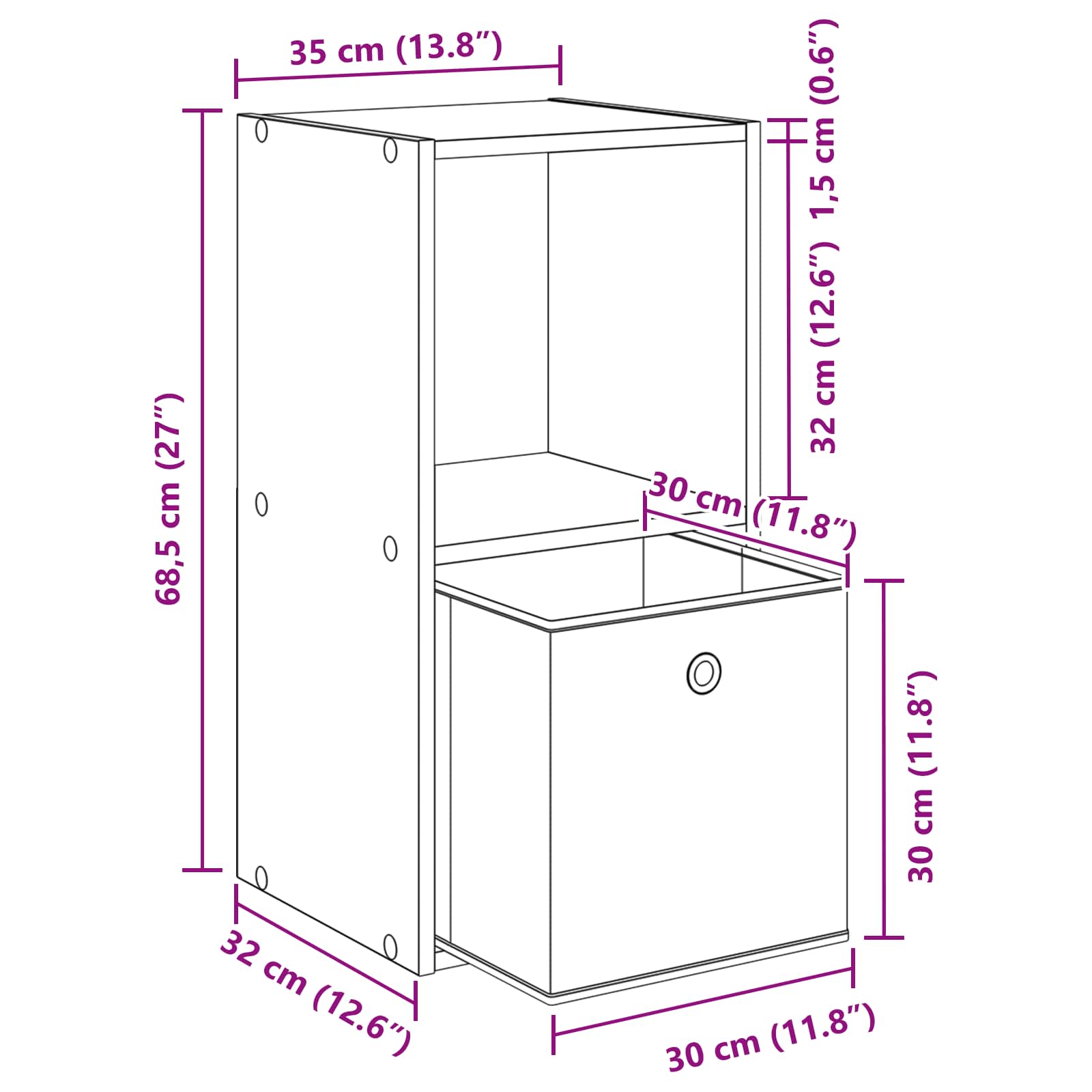 - Splošne dimenzije: 35 x 32 x 68,5 cm (Š x G x V)
