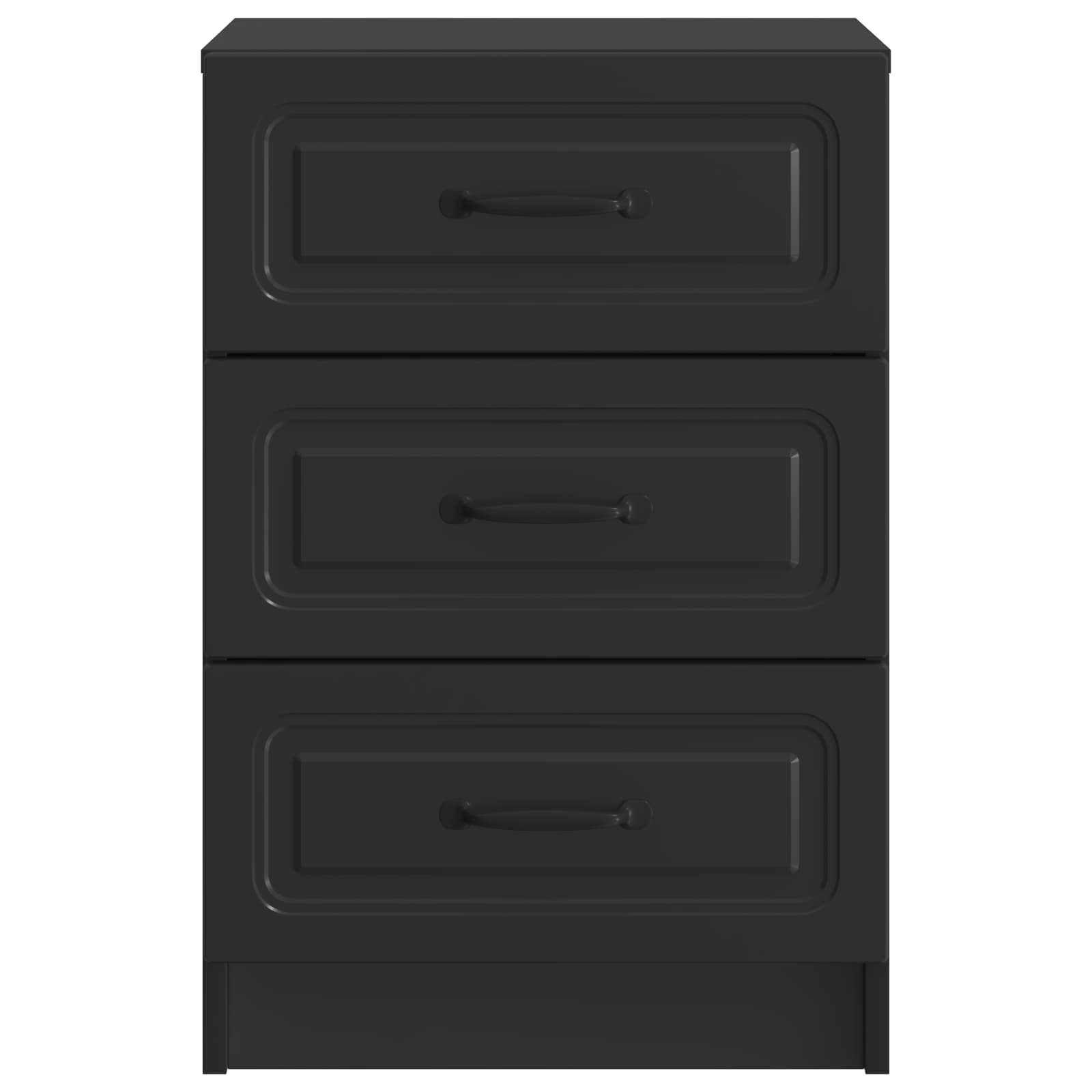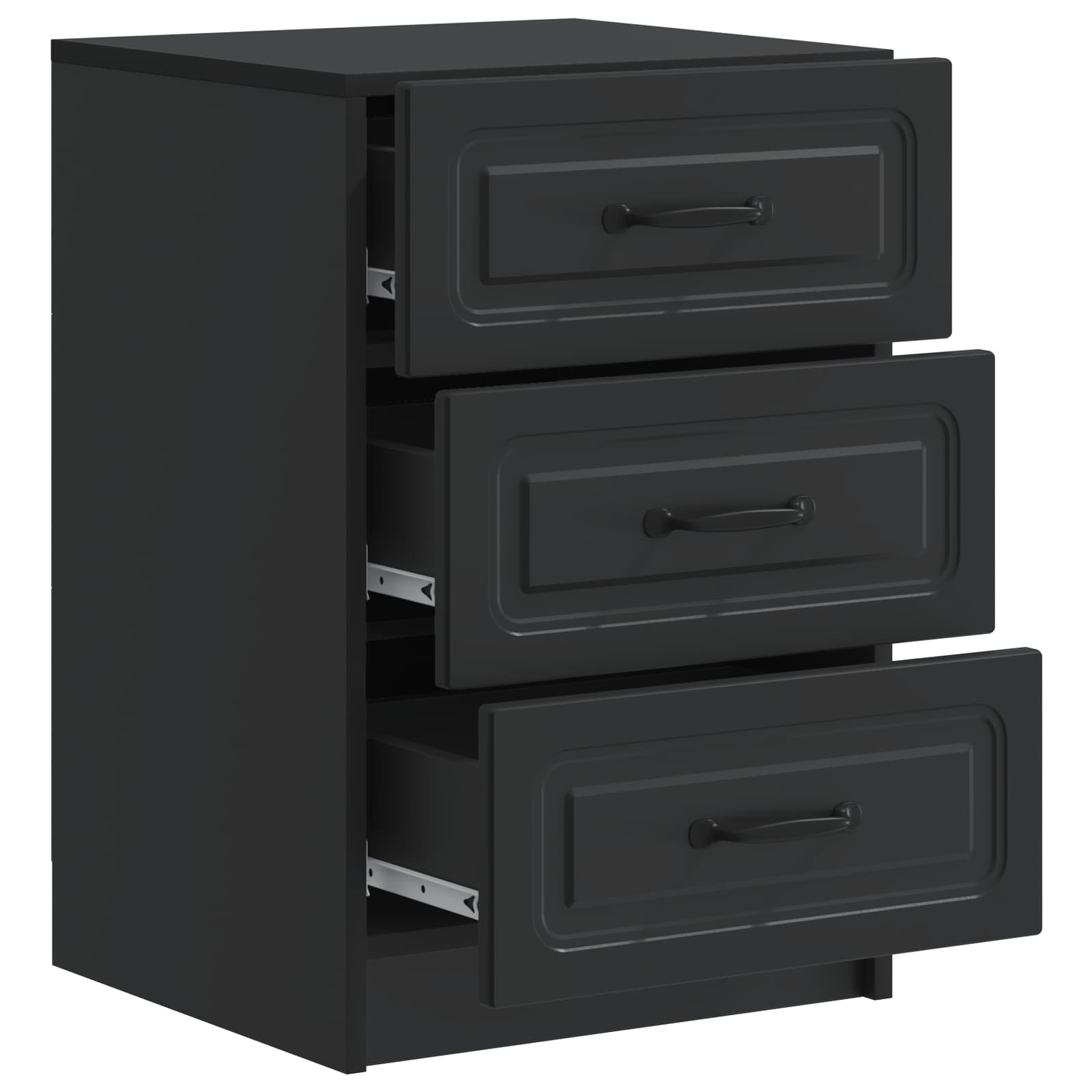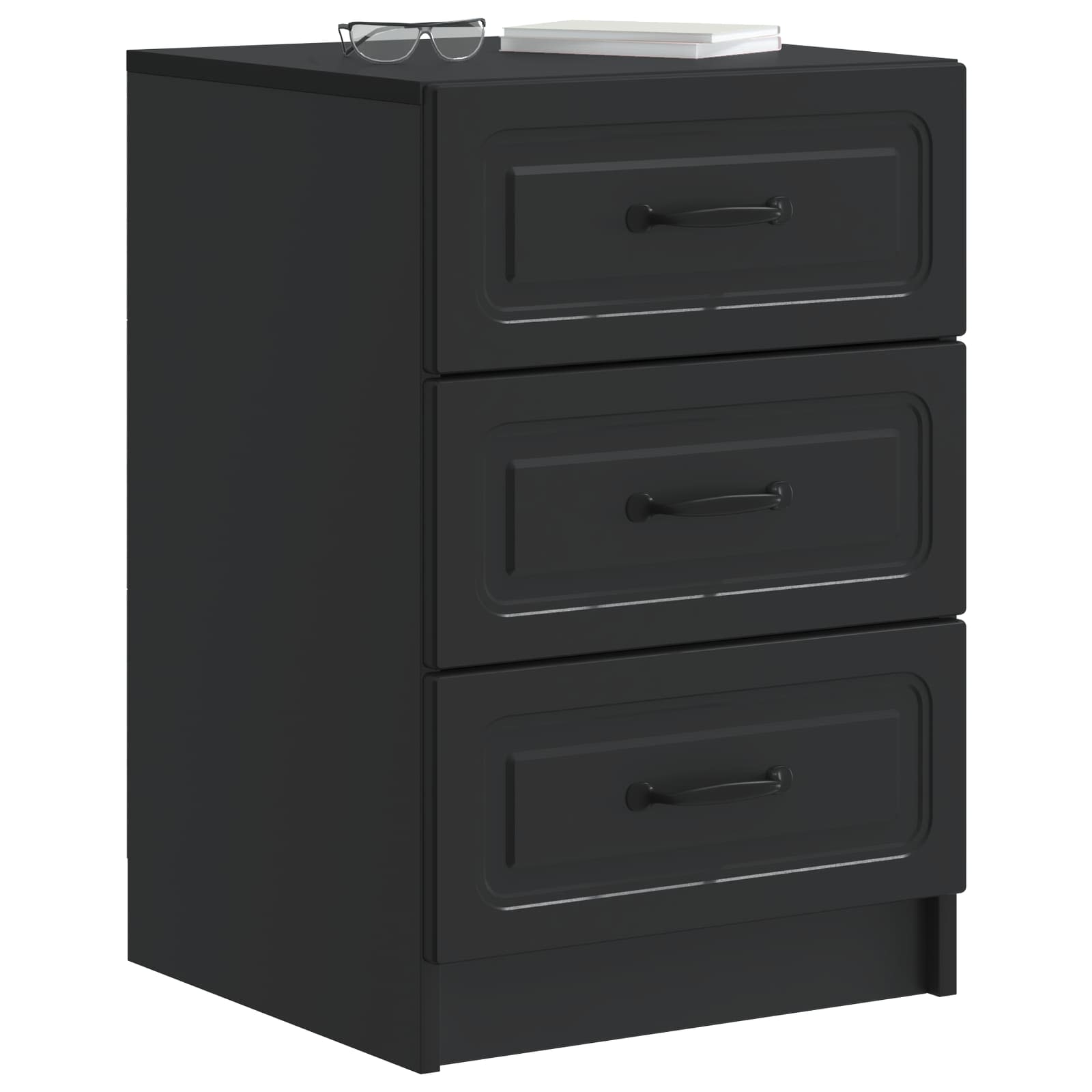 Moderna nočna omarica je nujni kos za vsako spalnico, saj nudi tako slog kot funkcionalnost. Njena vintage oblika, ki prinaša duh preteklosti, brez truda dvigne vse vrste dekoracij. Oblika je kompaktna in odlična za poleg postelje, saj je popolna za shranjevanje nujnih stvari, kot so svetilke, budilke ali osebni predmeti. Končna obdelava iz inženirskega lesa zagotavlja robustno in šik površino, medtem ko črni ročaji dodajajo moderen izgled. Ta omarica je odlična izbira za vsako spalnico. Visokokakovostni materiali Izdelana iz inženirskega lesa, ta nočna omarica nudi moč in lepo estetiko, ki zagotavlja gladek zaključek. Material je enostaven za čiščenje – le z vlažno krpo jo obrišite in ostane v brezhibnem stanju. Prostor za shranjevanje Zasnovana je z obilo prostora za shranjevanje, saj predali omogočajo dovolj prostora za vse vaše stvari, kar poenostavi organizacijo. Prostoren notranji del lahko shranjuje vse, od knjig do elektronike, zato imate vse, kar potrebujete ponoči, na dosegu roke. Sličen dizajn Vintage slog z modernim pridihom omogoča, da se ta omarica brez težav vklopi v različno spalno dekoracijo. Ročaji v obliki palice nudijo elegance in minimalističen videz, ki doda celotno estetiko. Enostavna sestava Omarica vsebuje preprost postopek sestavljanja, potrebujete le izvijač, kladivo, merilni trak in vrtalnik. Dva človeka jo lahko hitro sestavita, kar zagotavlja hitro namestitev. Enostavna nega Vzdrževanje te omarice je preprosto in zahteva le redno brisanje prahu. Za globinsko čiščenje jo lahko nežno obrišete z vlažno krpo, pri čemer se izogibajte strojnim kemikalijam, da ne poškodujete površine.
