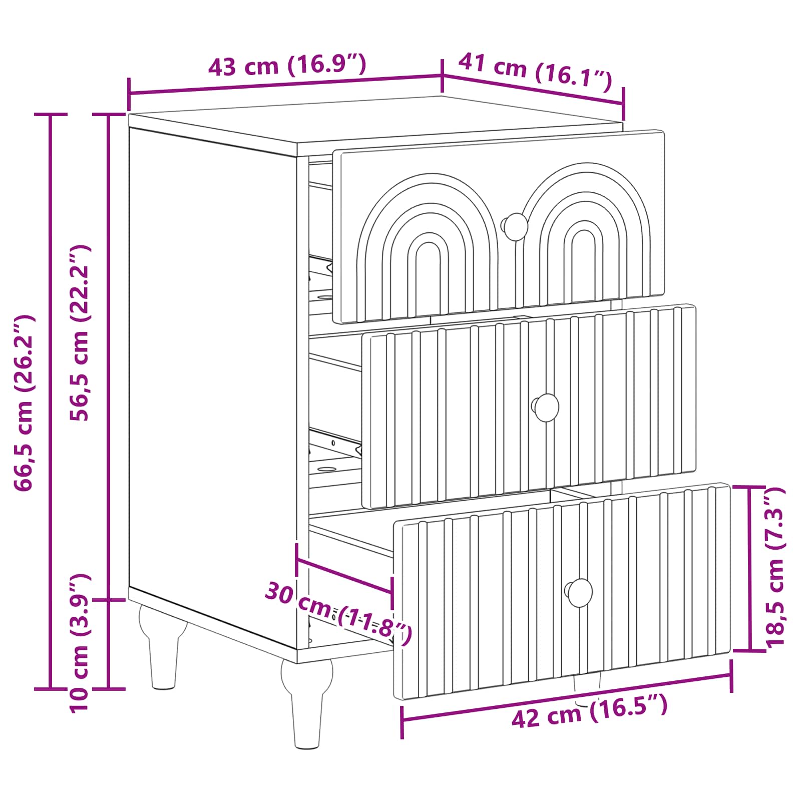 - Splošne dimenzije: 43 x 41 x 66,5 cm (D x Š x V)