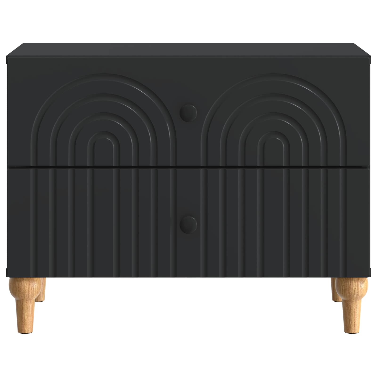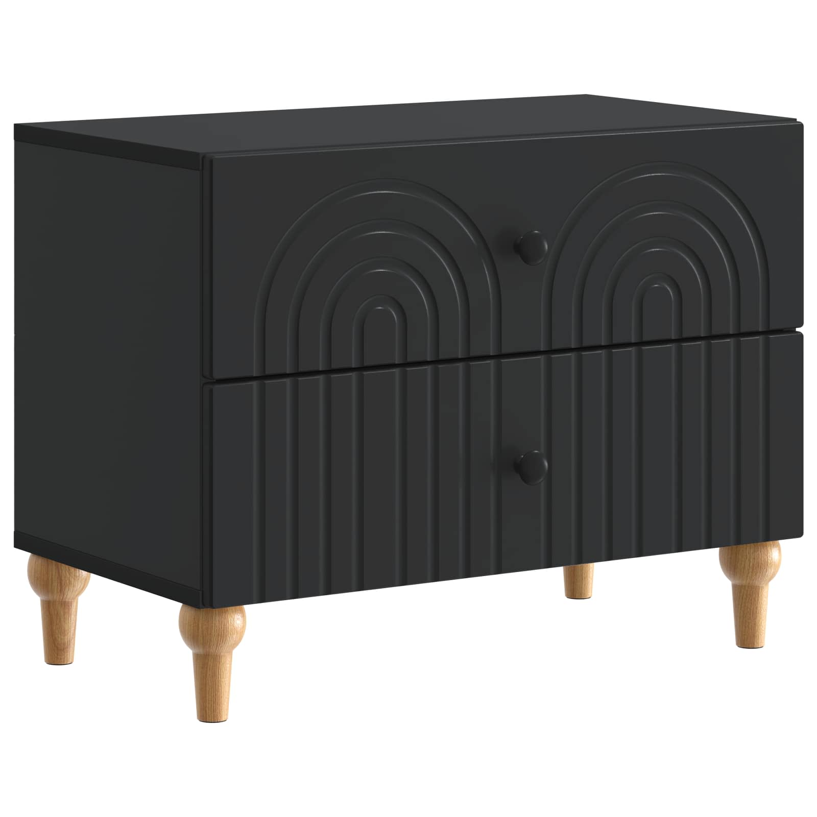 Ta elegantna nočna omarica prinaša moderni stil s svojim pravokotnim dizajnom in črtastim vzorcem. Popolnoma je zasnovana, da doda funkcionalnost in šarm v dnevno sobo ali spalnico, deluje kot odličen spremljevalec postelje, nudi rešitve za shranjevanje ter se lepo ujame z estetiko prostora. Njena minimalistična, a stilizirana oblika se brez težav prilega različnim dekorjem, zaradi česar je vsestranska za sproščene in sofisticirane prostore. Subtilna struktura iz inženirskega lesa daje občutek kakovosti in stabilnosti. Konstrukcija iz inženirskega lesa Ta omarica iz kvalitetnega inženirskega lesa nudi trdnost in privlačen izgled. Izbira materiala zagotavlja, da ostane trda in odporna na vsakodnevno obrabo, kar pomeni zanesljivo službo še dolga leta. Obilne možnosti shranjevanja Zasnovana s predali in elegantnimi gumbi, omarica nudi prostoren prostor za osebne stvari in dodatne potrebščine. Ta dizajn spodbuja organiziranost, kar jo naredi praktičen dodatek k vsakemu domu. Sofisticiran moderen stil Moderna, preprosta zasnova z unikatno črtasto obrobo zagotavlja, da se nočna omarica brez težav prilagaja prostorom z minimalistično estetiko. Zasnovana za uporabnost Ta omarica izboljšuje funkcionalnost prostora. Njena kompaktna velikost omogoča, da se prilega ob posteljo, hkrati pa nudi dovolj površine za svetilke in budilke. Enostavno vzdrževanje Da bi ohranili videz kot nov, preprosto obrišite z vlažno krpo, kar omogoča brezskrbno nego za zaposlene lastnike domov.