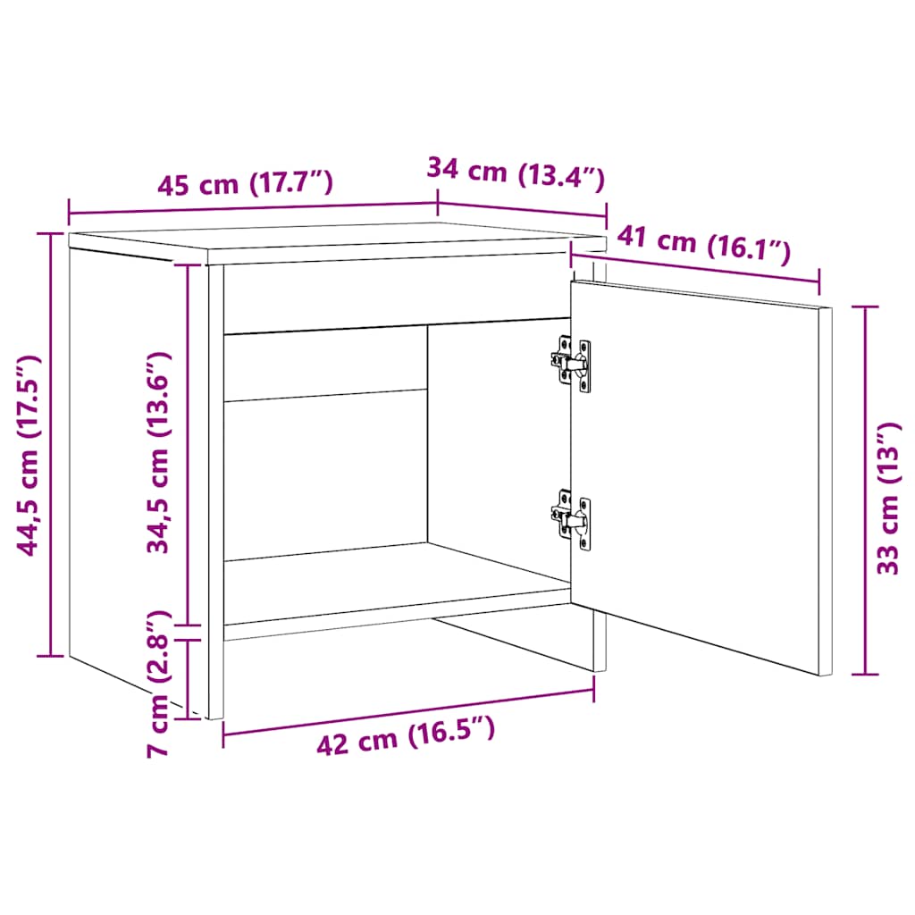 Ta nočna omarica z elegantnim dizajnom je brezčasen dodatek za vaše notranje prostore. Konstrukcija te nočne omarice zagotavlja njeno trdnost, vzdržljivost in dolgotrajnost. Opremljena je z 1 vrati, zato nočna omarica zagotavlja veliko prostora za organizirano shranjevanje vaših revij, knjig, daljinskih upravljalnikov in drugih majhnih stvari na dosegu roke. Čiščenje je preprosto, z vlažno krpo.