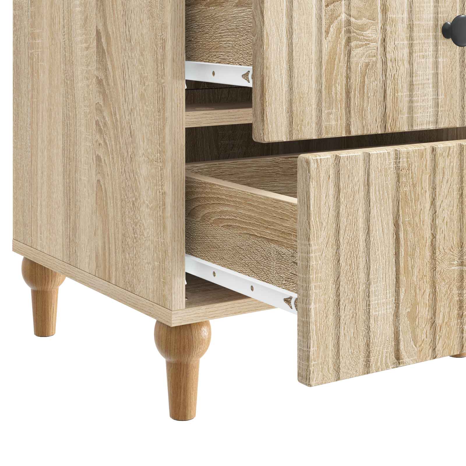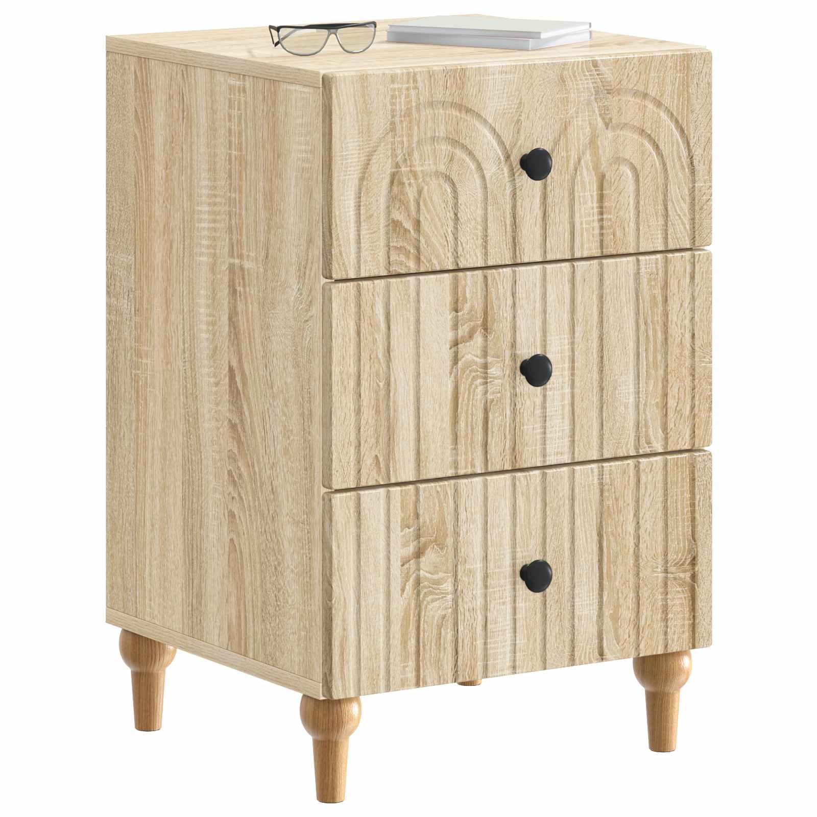 Ta moderna nočna omarica združuje stil in funkcionalnost, kar jo dela idealno za minimalistične prostore. Zasnovana je tako, da izboljšuje bivalne in spalne prostore, s svojim elegantnim pravokotnim oblikovanjem in vsestransko uporabnostjo. Z dovolj prostora za osnovne potrebščine, kot so luči in budilke, se brez težav prilega tudi na manjše prostore. Izdelana je iz inženirskega lesa, kar ji daje zanesljivost in dolgotrajnost, hkrati pa ostaja estetsko privlačna. Njena zasnova omogoča enoren prehod med prostori, bodisi kot elegantna nočna omarica, bodisi kot praktična rešitev za shranjevanje v dnevni sobi. Inženirski les: Omarica je narejena iz vrhunskega inženirskega lesa, znanega po svoji dolgotrajnosti. Ta material je cenovno ugoden in preprečuje hitro obrabo. Njena gladka površina daje moden videz in olajša čiščenje. Robustni kovinski ročaji: Predali so opremljeni s kovinskimi ročaji v črni barvi, ki združujejo trajnost in stil. Ti ročaji omogočajo enostaven dostop do vsega, kar potrebujete. Njihov poudarjen dizajn dodaja omarici na sodobni privlačnosti. Funkcionalni drsni predali: Predali so zasnovani tako, da omogočajo enostavno odpiranje in zapiranje ter zagotavljajo brezskrbno shranjevanje. Idealni so za knjige, recepte ali osebne predmete. Prilagodljive možnosti postavitve: Lahko jo uporabljaš kot stransko mizo ali nočno omarico. Njena kompaktna velikost in nevtralna zasnova se brez težav prilagajata različnim okoljem. Ta omarica je odlična izbira za tiste, ki cenijo tako stil kot funkcionalnost. Enostavno vzdrževanje: Pomembno je, da omarico zlahka obdržiš čisto – le obriši jo z vlažno krpo, da odstraniš prah. Ta enostaven postopek zagotavlja, da ostane brezhibna in elegantna skozi dolga leta uporabe.