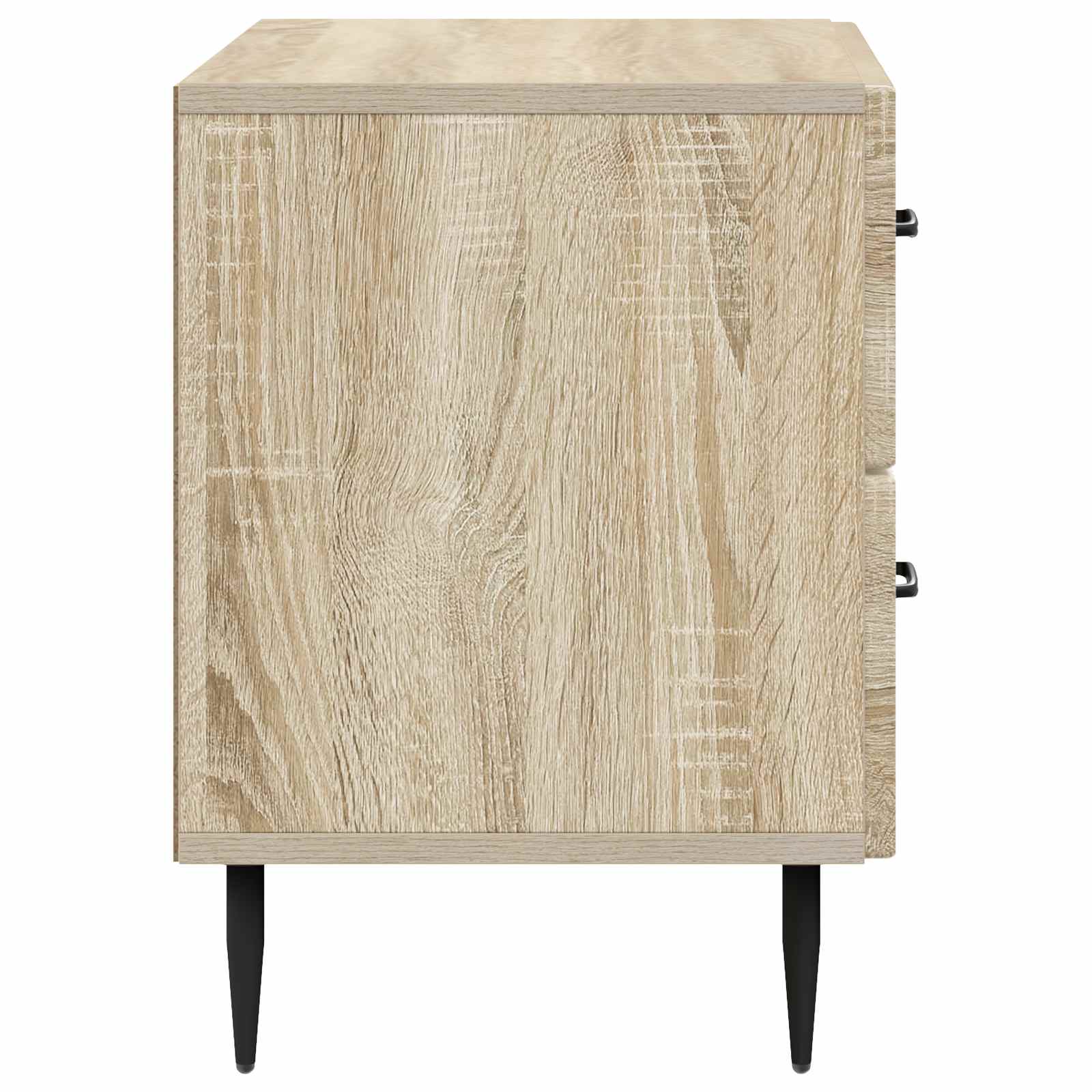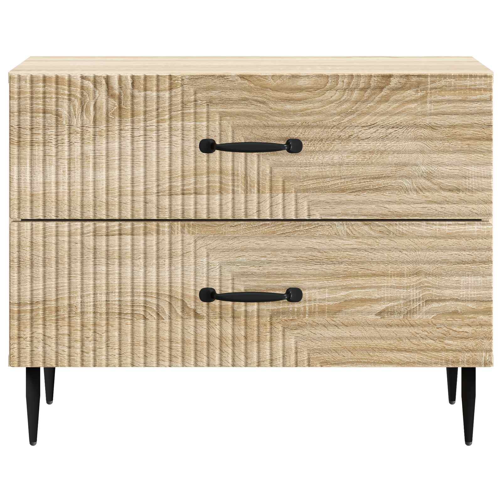 Ta moderna nočna omarica z vintage pridihom se brez težav vklopi v vsak dekor spalnice in nudi estetski učinek ter praktično udobje. Njena pravokotna oblika in skromne dimenzije 62 x 34,5 x 47,5 cm jo naredijo idealno za majhne prostore, ne da bi izgubila svoj prevladujoč videz. Uporabna je za luči, budilke ali osobne stvari, kar jo dela odlično izbiro za brezčasen stil in praktičnost, ki v vsak prostor prinaša prijeten duh. Učinkovit površinski material Površina iz trpežnega inženirskega lesa ohranja svoj čar in omogoča preprosto vzdrževanje z brisanjem z vlažno krpo. Zožene kovinske noge Črne, elegantne noge iz kovine ne le dodajajo sodoben videz, ampak tudi trdno podporo. Njihova zožena zasnova zagotavlja stabilnost ter prepletanje funkcionalnosti in estetike. Obilen prostor za shranjevanje Prostorni predali iz inženirskega lesa ponujajo dovolj prostora za čim boljšo organizacijo vaših osebnih predmetov. Moderna naravna barva in ravni ročaji naredijo odpiranje in zapiranje predalov enostavno. Vsestrana uporaba Ta omarica se prilega različnim slogom notranjosti. Njena vintage zasnova jo dela primerno za klasične in moderne prostore ter je idealna za tiste, ki cenijo brezčasno eleganco s pridihom sodobnosti. Navodila za vzdrževanje Vzdrževanje je preprosto – hiter bris z vlažno krpo jo ohranja v odličnem stanju ter podaljšuje njeno življenjsko dobo, ne da bi žrtvovali njen stil. Ta rutina povezuje estetiko s praktičnostjo.