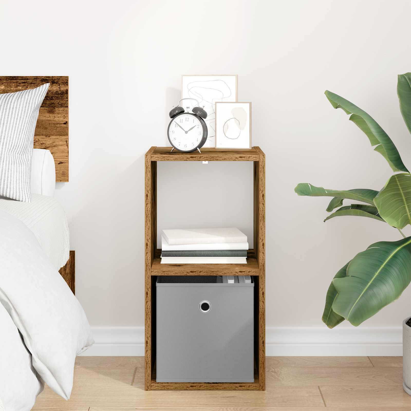 Ta moderna nočna omarica se ponaša s preprostim, a funkcionalnim dizajnom. Ima elegantno pravokotno obliko, ki se lepo prilega vsaki sodobni spalnici. Odlično je zasnovana za shranjevanje ob postelji, saj sprejme luči, budilke in osebne stvari. Je estetsko privlačna, saj je narejena iz inženirskega lesa in ima čiste linije. Postavljena poleg vaše postelje, dvigne celoten stil prostora in služi tako kot funkcionalna rešitev za shranjevanje kot dekorativni element. Vseeno, ali gre za šik sobo ali prijetno spalnico, se brez težav povezuje funkcionalnost in kakovost. Ergonomična oblika in vgrajeni ročaji dodajo prijeten dotik, ki povezuje eleganco z vsakodnevno uporabnostjo. Inženirski les: Ta nočna omarica je izdelana iz inženirskega lesa, kar ji daje dolgo življenjsko dobo in odpornost na vsakodnevno rabo. Material ohranja svoj videz in daje omarici klasičen šarm skozi leta. Ta material je izbran zaradi svoje prilagodljivosti, kar ga naredi popolnega za sodoben življenjski slog, kjer se moč srečuje s stilom. Praktični predali: Z vgrajenimi ročaji ponuja skrbno skrite shranjevalne možnosti. Inovativen dizajn ročajev zagotavlja diskretno površino in enostaven dostop do vseh stvari. Te funkcije naredijo to omarico ključno za vaš prostor, saj ponuja funkcionalno shranjevanje, ki je tudi šik. Sodobna zasnova: Čiste linije in minimalna okrasitev omogočajo, da se omarica brez težav prilega različnim stilom notranje opreme. Njena funkcionalnost je odlična, saj služi različnim namenom, od shranjevanja osebnih stvari do dekoracije, kar prispeva k celoten videz prostora. Njena vsestranskost v dizajnu jo naredi neprecenljivo za vsak prostor in ohranja lahkotno estetiko. Široka uporaba: Idealna je za spalnice, dnevne sobe in domače pisarne, saj ponuja vrhunsko uporabnost v različnih vlogah. Sposobna je hraniti dekor in shranjevati potrebščine, se lepo ujema s prostorom in združuje funkcionalnost s stilom, kar je perfektno za organizacijo nered brez izgube stila. Navodila za nego: Sestavljanje zahteva dve osebi in izvijač. Ohranite omarico z rednim brisanjem s suho krpo in jo zaščitite. Čeprav je zasnovana za dolgotrajno uporabo, jo je priporočljivo nežno obravnavati in redno vzdrževati, da podaljšate njeno življenjsko dobo.