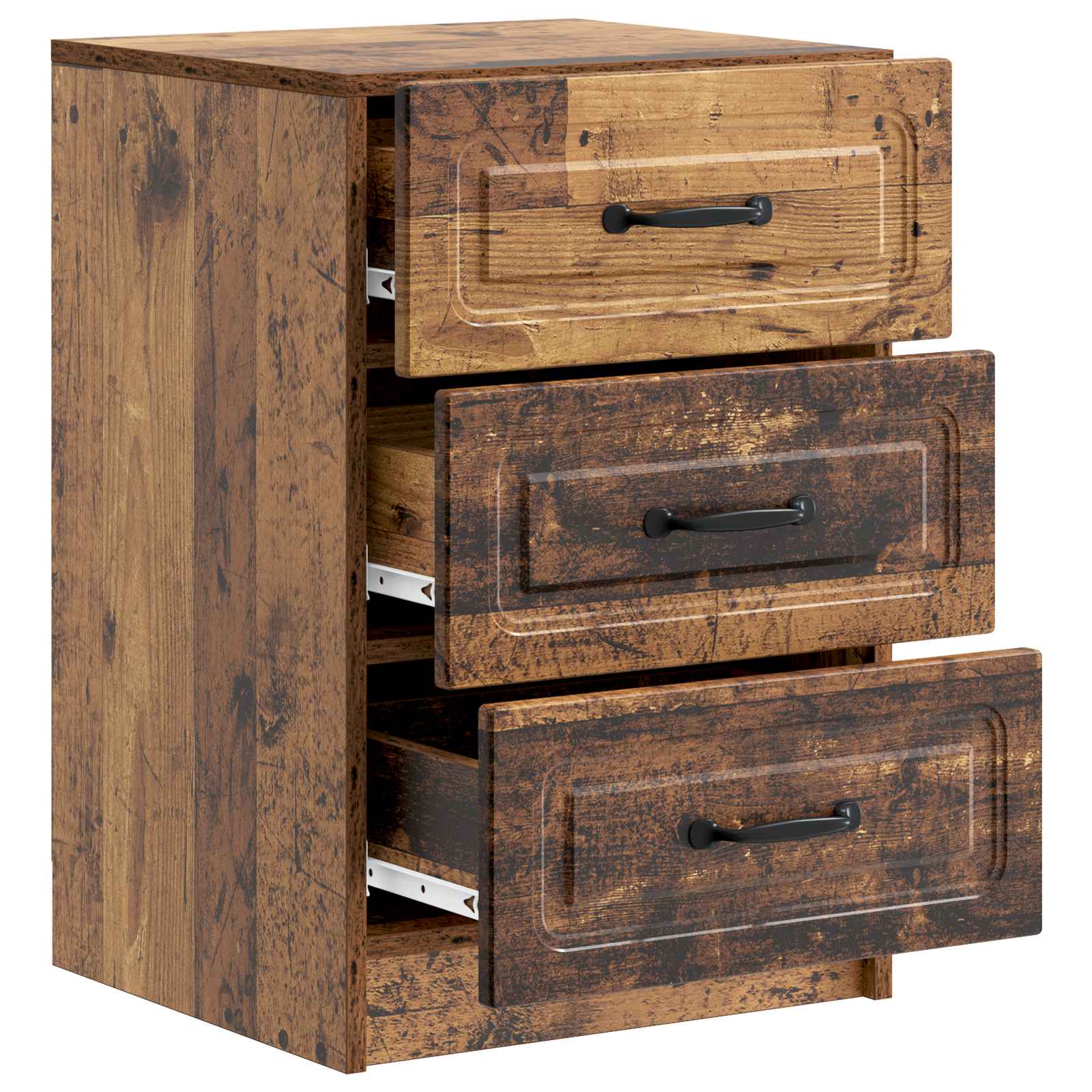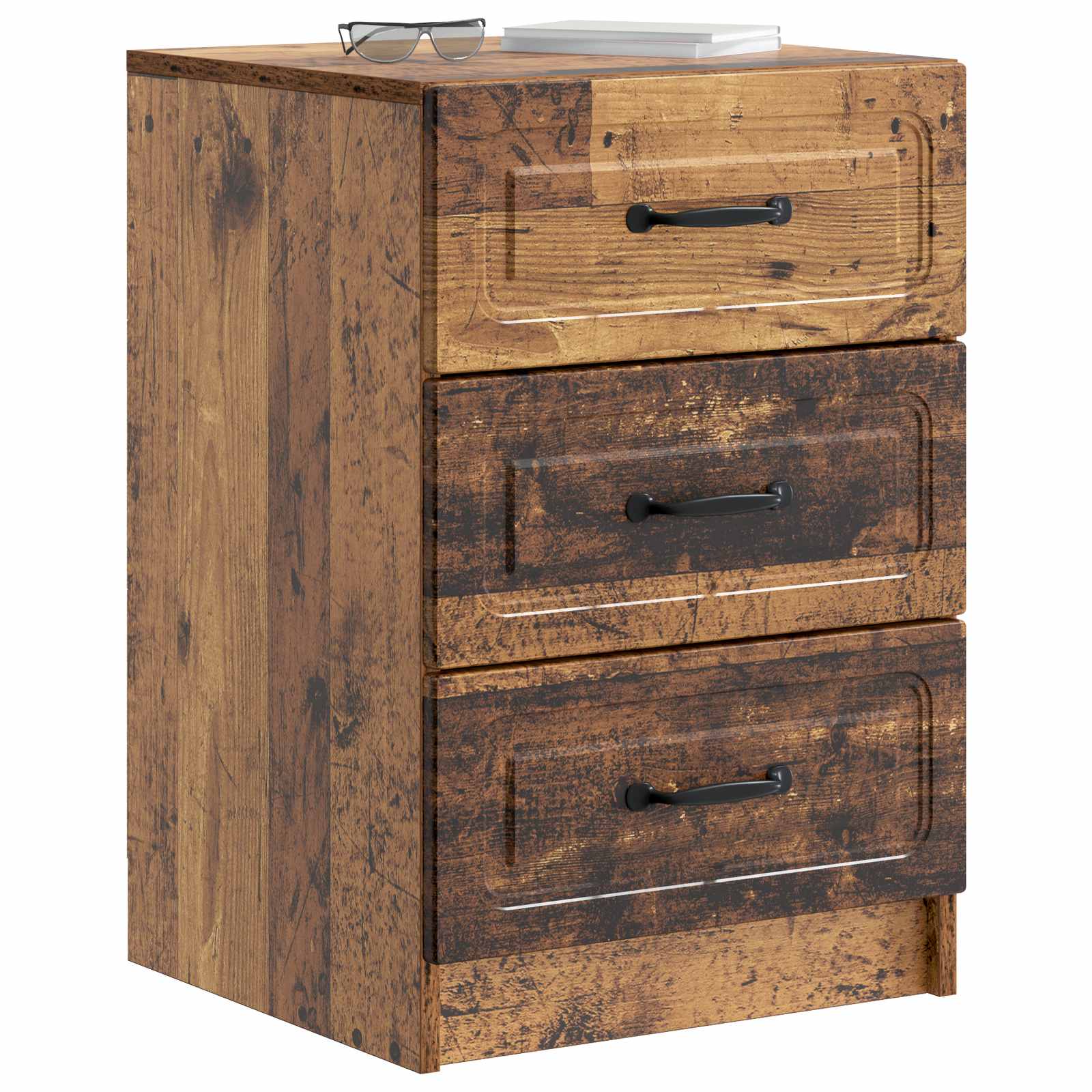 Moderna nočna omarica je nujni kos za vsako spalnico, saj nudi tako slog kot funkcionalnost. Njena vintage oblika, ki prinaša duh preteklosti, brez truda dvigne vse vrste dekoracij. Oblika je kompaktna in odlična za poleg postelje, saj je popolna za shranjevanje nujnih stvari, kot so svetilke, budilke ali osebni predmeti. Končna obdelava iz inženirskega lesa zagotavlja robustno in šik površino, medtem ko črni ročaji dodajajo moderen izgled. Ta omarica je odlična izbira za vsako spalnico. Visokokakovostni materiali Izdelana iz inženirskega lesa, ta nočna omarica nudi moč in lepo estetiko, ki zagotavlja gladek zaključek. Material je enostaven za čiščenje – le z vlažno krpo jo obrišite in ostane v brezhibnem stanju. Prostor za shranjevanje Zasnovana je z obilo prostora za shranjevanje, saj predali omogočajo dovolj prostora za vse vaše stvari, kar poenostavi organizacijo. Prostoren notranji del lahko shranjuje vse, od knjig do elektronike, zato imate vse, kar potrebujete ponoči, na dosegu roke. Sličen dizajn Vintage slog z modernim pridihom omogoča, da se ta omarica brez težav vklopi v različno spalno dekoracijo. Ročaji v obliki palice nudijo elegance in minimalističen videz, ki doda celotno estetiko. Enostavna sestava Omarica vsebuje preprost postopek sestavljanja, potrebujete le izvijač, kladivo, merilni trak in vrtalnik. Dva človeka jo lahko hitro sestavita, kar zagotavlja hitro namestitev. Enostavna nega Vzdrževanje te omarice je preprosto in zahteva le redno brisanje prahu. Za globinsko čiščenje jo lahko nežno obrišete z vlažno krpo, pri čemer se izogibajte strojnim kemikalijam, da ne poškodujete površine.