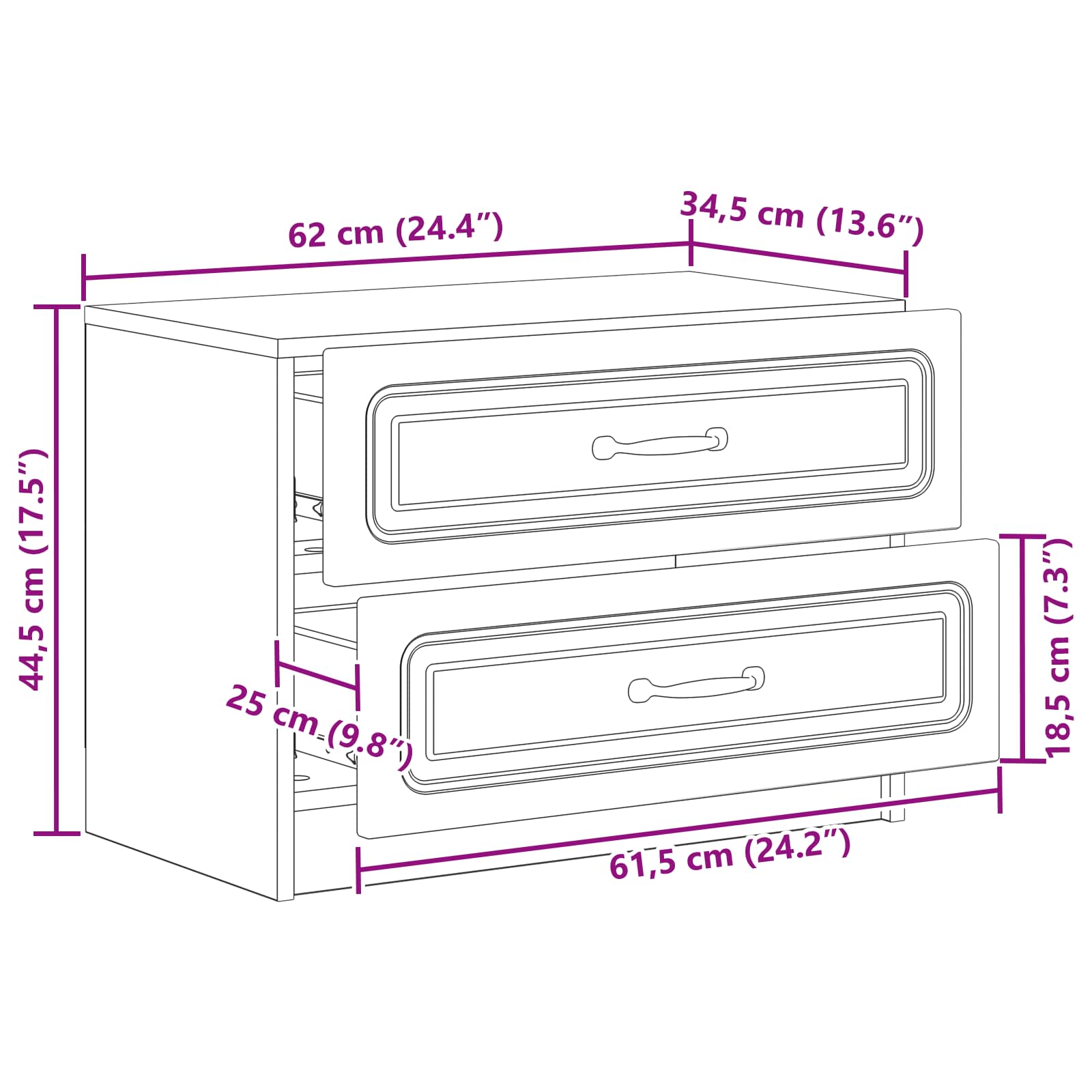 - Splošne dimenzije: 62 x 34,5 x 44,5 cm (D x Š x V)