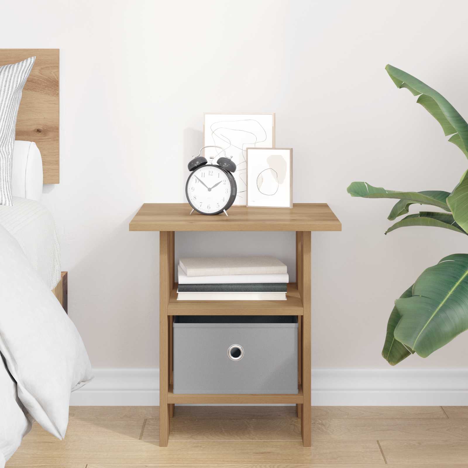 Moderna nočna omarica doda kanček elegance in funkcionalnosti v vsako spalnico. Ta praktičen kos z lepimi linijami in enostavno silhueto izboljša celoten videz prostora. Idealna je za shranjevanje potrebnih stvari, ki morajo biti pri roki, in enostavno se prilega k vsakemu stilu pohištva. Uživaj v prenovi svoje spalnice, ker se brez težav ujema s tvojim obstoječim pohištvom in drži nočne potrebščine na dosegu. Gradnja iz inženirskega lesa: Ta nočna omarica je narejena iz trpežnega inženirskega lesa, ki se ponaša z močjo in dolgo življenjsko dobo. To zagotavlja gladko površino, ki doda sodoben videz tvoji dekoraciji. Prostorne možnosti shranjevanja: Ima prostoren predal in odprto polico, kar je super za shranjevanje knjig, elektronike ali svetilk. Zasnova omogoča red in stil, kar pomeni, da je nujna za vsak dom. Minimalistična zasnova z vgrajenimi ročaji: Vgrajeni ročaji dodajo eleganco in omogočajo enostaven dostop do predala brez moteče opreme. To izboljša minimalistični videz in funkcionalnost. Vsestran in moden dizajn: Ta nočna omarica se brez težav prilega v dnevne sobe ali spalnice in povečuje njeno uporabnost. S svojim šik izgledom je idealna za različne prostore. Enostavno sestavljanje in skrb: Enostavna nastavitev, ki ji boš potreboval samo izvijač in malo pomoči. Z njenim skrbnim vzdrževanjem bo ostala lepa še dolga leta.