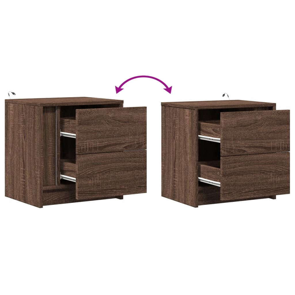 Nočna omarica z LED lučkami rjavi hrast inženirski les