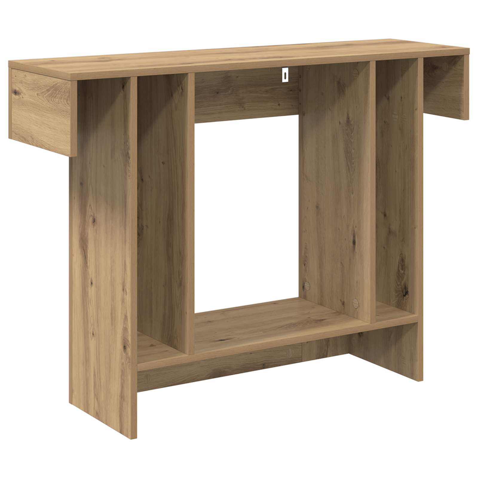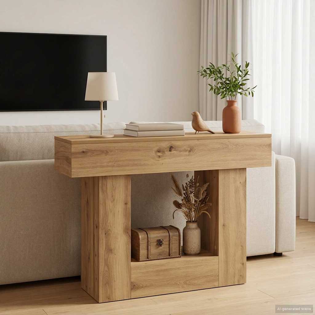 Ta konzolna miza dodaja moderno eleganco vašemu prostoru, hkrati pa se ponaša s čistimi linijami in sodobno zasnovo. Popolna za hladnejše dni, dopolnjuje zimsko tematiko s svojo elegantno strukturo in funkcionalnostjo. Zasnovana je za vse, ki cenijo stil in praktičnost, ponuja veliko rešitev za shranjevanje brez kompromisov pri vizualni privlačnosti. Sodoben estetski videz: Konzolna miza ima minimalističen slog, ki se odlično vnese v sodobne bivalne prostore. Njena brezčasna eleganca je privlačen dodatek v vhodih, dnevnih sobah ali jedilnicah. Funkcionalno shranjevanje: Opremljena z več predelki, ta miza ponuja raznolike možnosti za shranjevanje knjig, dekoracij ali drugih osebnih stvari. Premisljen razpored poskrbi za enostaven dostop in dobro organizacijo, kar pripomore k urejenosti vašega doma. Močna zgradba: Zasnovana za vsakodnevno uporabo, ta miza je robustna in zanesljiva. Kakovostni materiali zagotavljajo, da ostane lepa in funkcionalna skozi zimske mesece ter dlje. Vsakdanji dekorativni kos: Idealna za domove, ki potrebujejo tako estetski videz kot tudi uporabnost, se ta miza lahko stilizira z različnimi sezonskimi dodatki, ki spreminjajo prostor. Pazljivo je potrebno sestavljanje: Sestava te konzolne mize je enostavna, vendar jo je najbolje izvesti v paru, saj to omogoča varno in zanesljivo namestitev.