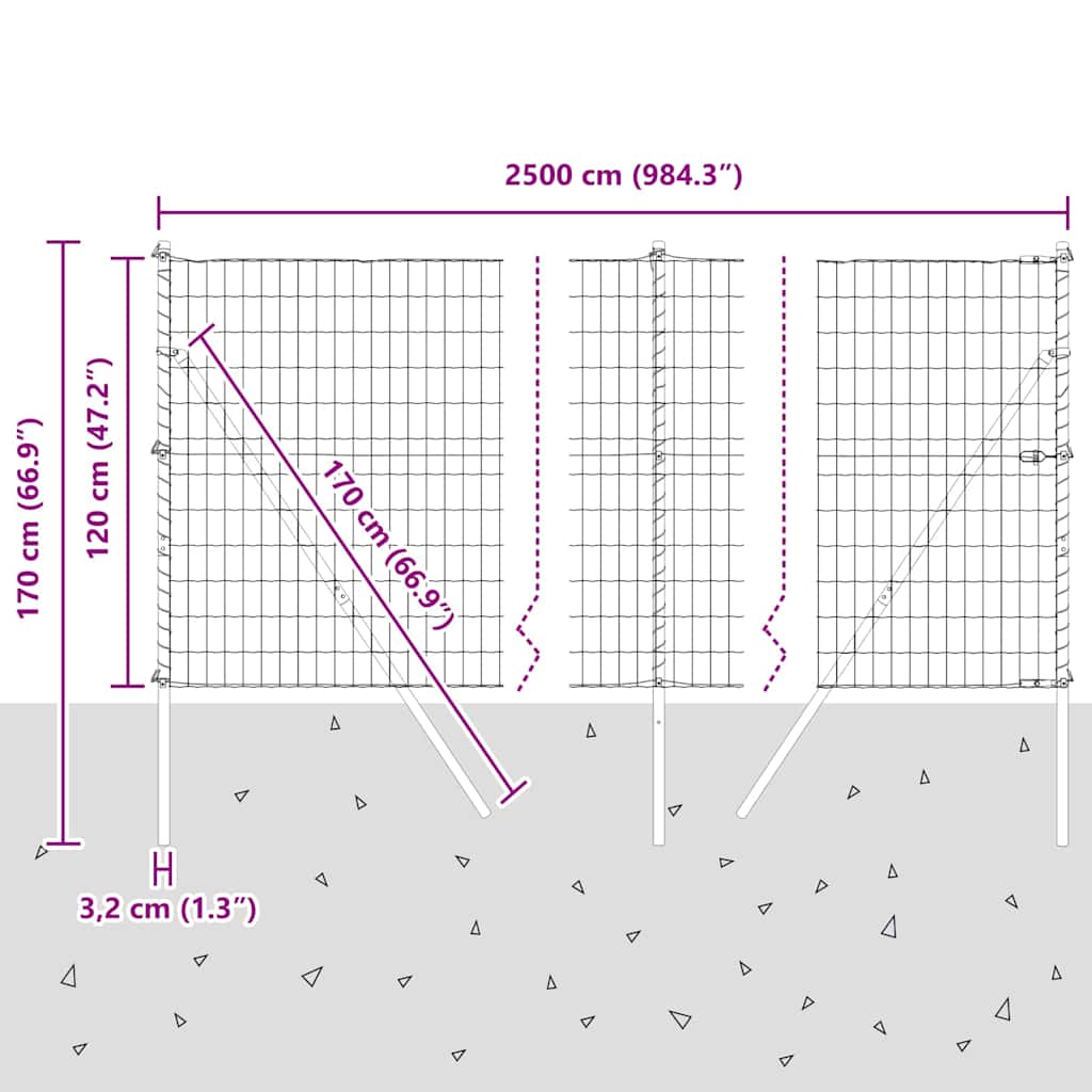- Splošne dimenzije: 2500 x 3,2 x 120 cm (D x Š x V)
