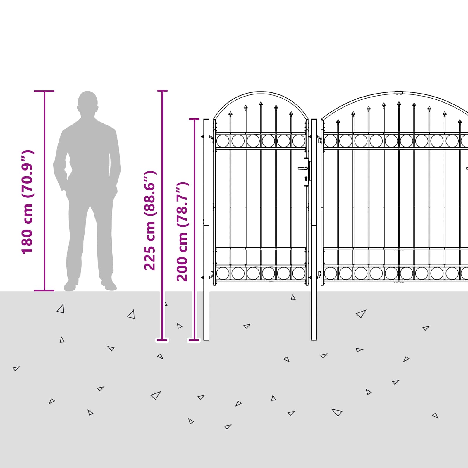 Ta trdna vrtnarska ograjna vrata z ukrivljenim vrhom prinašajo moderne linije, ki združujejo preprostost s funkcionalnostjo, idealne za zunanje prostore kot so vrtovi in terase. Izdelana iz gladkega in vodoodpornega jekla, nudijo eleganten izgled in večjo varnost vašemu vrtnarskemu prostoru. Jeklena konstrukcija Ta vrtnarska vrata so narejena iz trdnega jekla, kar zagotavlja dolgotrajno uporabo in odpornost na vreme. Široka moč materiala pomeni dolgo življenjsko dobo, gladka tekstura pa omogoča enostavno čiščenje. Ukrivljen vrh Eleganten ukrivljen vrh doda pridih elegance vrtnemu prostoru. Poleg izboljšanega vizualnega učinka, postane lahko osrednji del vrta ali se harmonično zlije z drugimi elementi. Varno in zaklepno Ta vrata imajo zaklepno funkcijo, ki povečuje varnost vašega vrta. Tako ostanejo zaprta in zaščitena pred ljubljenčki ali nezaželenimi obiskovalci. Stebri in namestitev Vrata vključujejo tri trdne stebre za dodatno stabilnost. Potrebno je nekaj sestavljanja, potrebujete samo vrtalnik, kar močno poenostavi postopek namestitve. Brezskrbno vzdrževanje Ko so enkrat nameščena, zahtevajo ta vrata minimalno vzdrževanje. Zasnovana so za zunanjo uporabo, kar pomeni, da zadostuje osnovno čiščenje, da ohranite lep izgled. Odpornost na obrabo zagotavlja dolgotrajno funkcionalnost in videz.