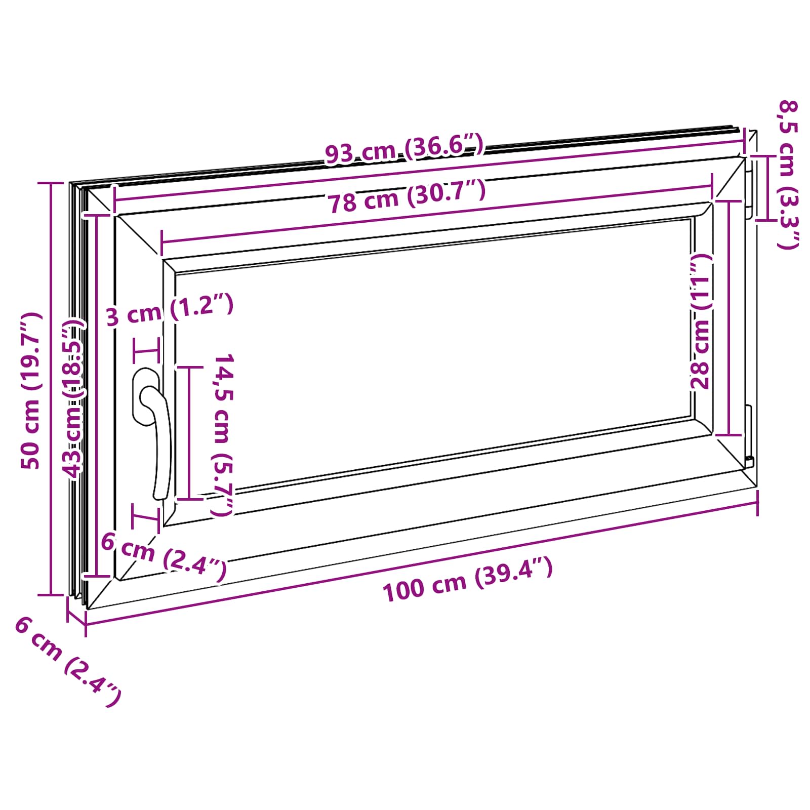 To moderno okno za klet združuje minimalistično zasnovo s praktičnostjo. Izdelano iz mešanice PVC in stekla, se lepo prilega notranjosti kleti, povečuje svetlost in dodaja stil. Njegove čiste linije ga naredijo odlično izbiro za vsako klet, saj ponuja tako vizualno privlačnost kot praktičnost za lastnike. Visokokakovostni materiali: Okno je izdelano iz PVC in stekla, kar mu daje moderen in čist videz ter dolgo življenjsko dobo. Močan PVC okvir zagotavlja eleganten zaključek, medtem ko steklo omogoča vstop naravne svetlobe, kar osvetli vaš dom in ustvari svež občutek. Enostavna uporaba: Ročni mehanizem za nagnitev in vrtenje omogoča enostavno upravljanje s pretokom zraka in svetlobe. Prilagodljiva zasnova dodaja udobje, saj jo lahko enostavno prilagodite po svojih željah. Moderni stil: S preprostim modernim videzom okno izboljša vašo kletno dekoracijo, hkrati pa je praktično za uporabo. Jasno steklo in urejen okvir ustvarjata stiliziran izgled, ki se ujema s sodobnimi interierji. Popolno za kleti: Okno je zasnovano za kleti in doda svetlost ter svežino vašemu domu. Njegova prilagodljiva zasnova se odlično prilega različnim postavitvam kleti, kar ga dela tako praktičnega kot vizualno privlačnega. Nizko vzdrževanje: Enostavno čiščenje – preprosto obrišite z vlažno krpo, da odstranite prah. Zasnova, ki zahteva malo vzdrževanja, vam omogoča, da uživate v svetli, vabljivi kleti brez dodatnega truda, kar je idealno za zaposleno gospodinjstvo.