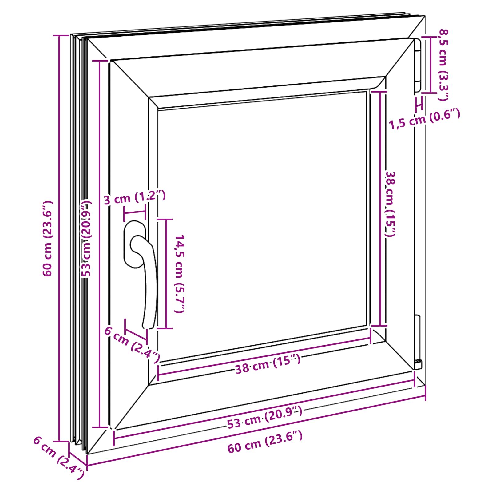 To moderno okno za klet združuje minimalistično zasnovo s praktičnostjo. Izdelano iz mešanice PVC in stekla, se lepo prilega notranjosti kleti, povečuje svetlost in dodaja stil. Njegove čiste linije ga naredijo odlično izbiro za vsako klet, saj ponuja tako vizualno privlačnost kot praktičnost za lastnike. Visokokakovostni materiali: Okno je izdelano iz PVC in stekla, kar mu daje moderen in čist videz ter dolgo življenjsko dobo. Močan PVC okvir zagotavlja eleganten zaključek, medtem ko steklo omogoča vstop naravne svetlobe, kar osvetli vaš dom in ustvari svež občutek. Enostavna uporaba: Ročni mehanizem za nagnitev in vrtenje omogoča enostavno upravljanje s pretokom zraka in svetlobe. Prilagodljiva zasnova dodaja udobje, saj jo lahko enostavno prilagodite po svojih željah. Moderni stil: S preprostim modernim videzom okno izboljša vašo kletno dekoracijo, hkrati pa je praktično za uporabo. Jasno steklo in urejen okvir ustvarjata stiliziran izgled, ki se ujema s sodobnimi interierji. Popolno za kleti: Okno je zasnovano za kleti in doda svetlost ter svežino vašemu domu. Njegova prilagodljiva zasnova se odlično prilega različnim postavitvam kleti, kar ga dela tako praktičnega kot vizualno privlačnega. Nizko vzdrževanje: Enostavno čiščenje – preprosto obrišite z vlažno krpo, da odstranite prah. Zasnova, ki zahteva malo vzdrževanja, vam omogoča, da uživate v svetli, vabljivi kleti brez dodatnega truda, kar je idealno za zaposleno gospodinjstvo.