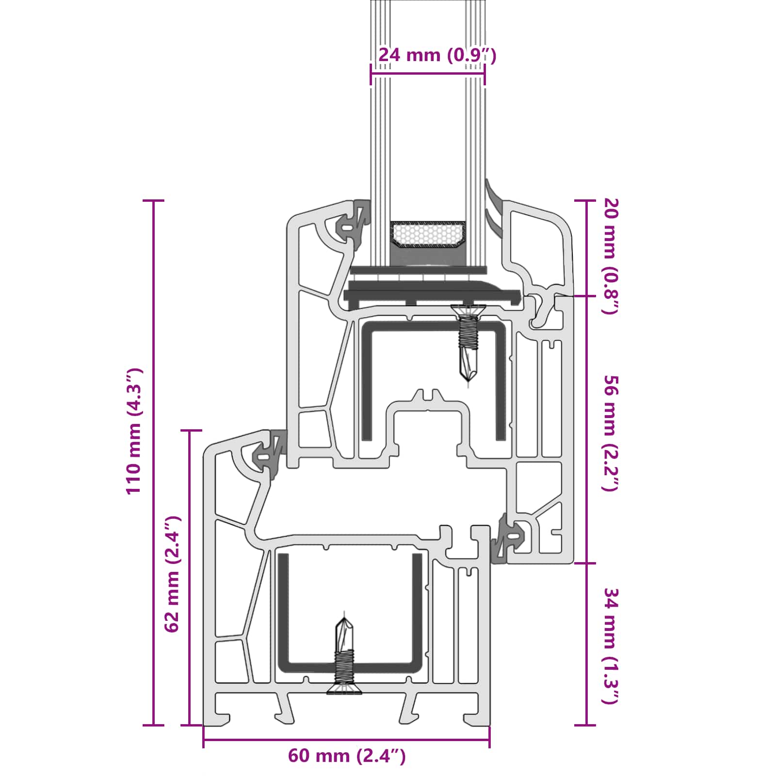 - Okvir ima 60 mm globine in 5-komorni sistem