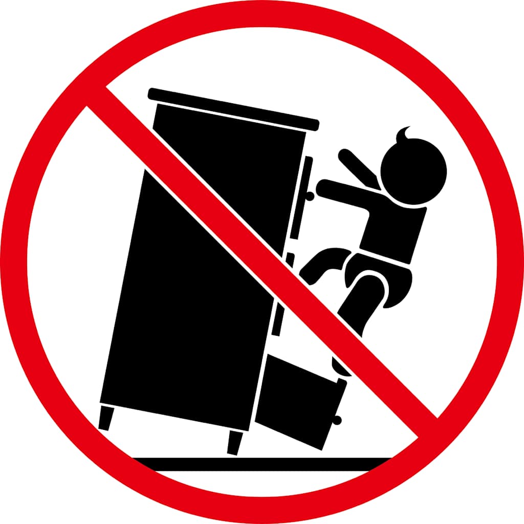 - OPOZORILO: Da se prepreči prevračanje, je treba ta izdelek uporabiti s priloženo napravo za pritrditev na steno.