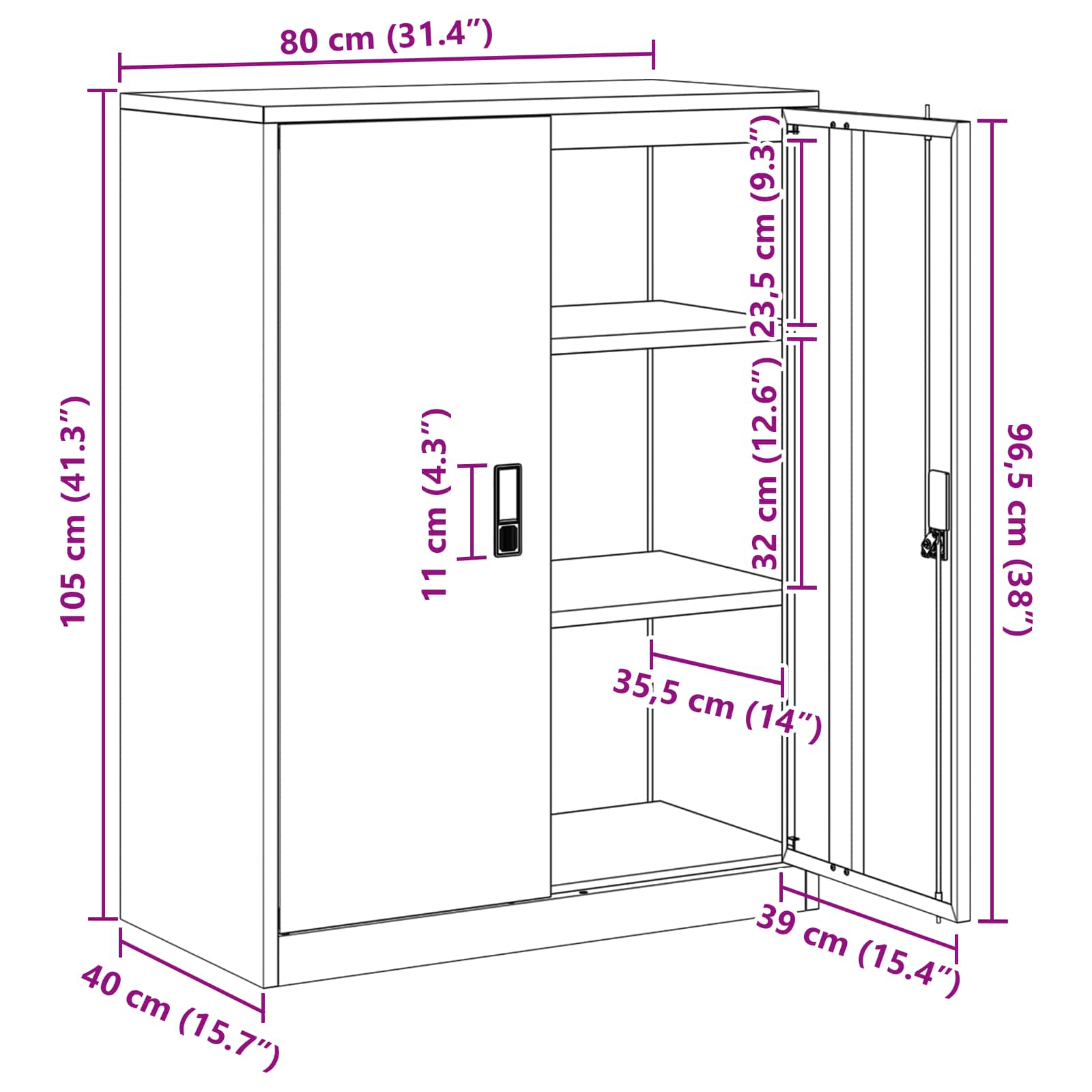 - Splošne dimenzije: 80 x 40 x 105 cm (D x Š x V)