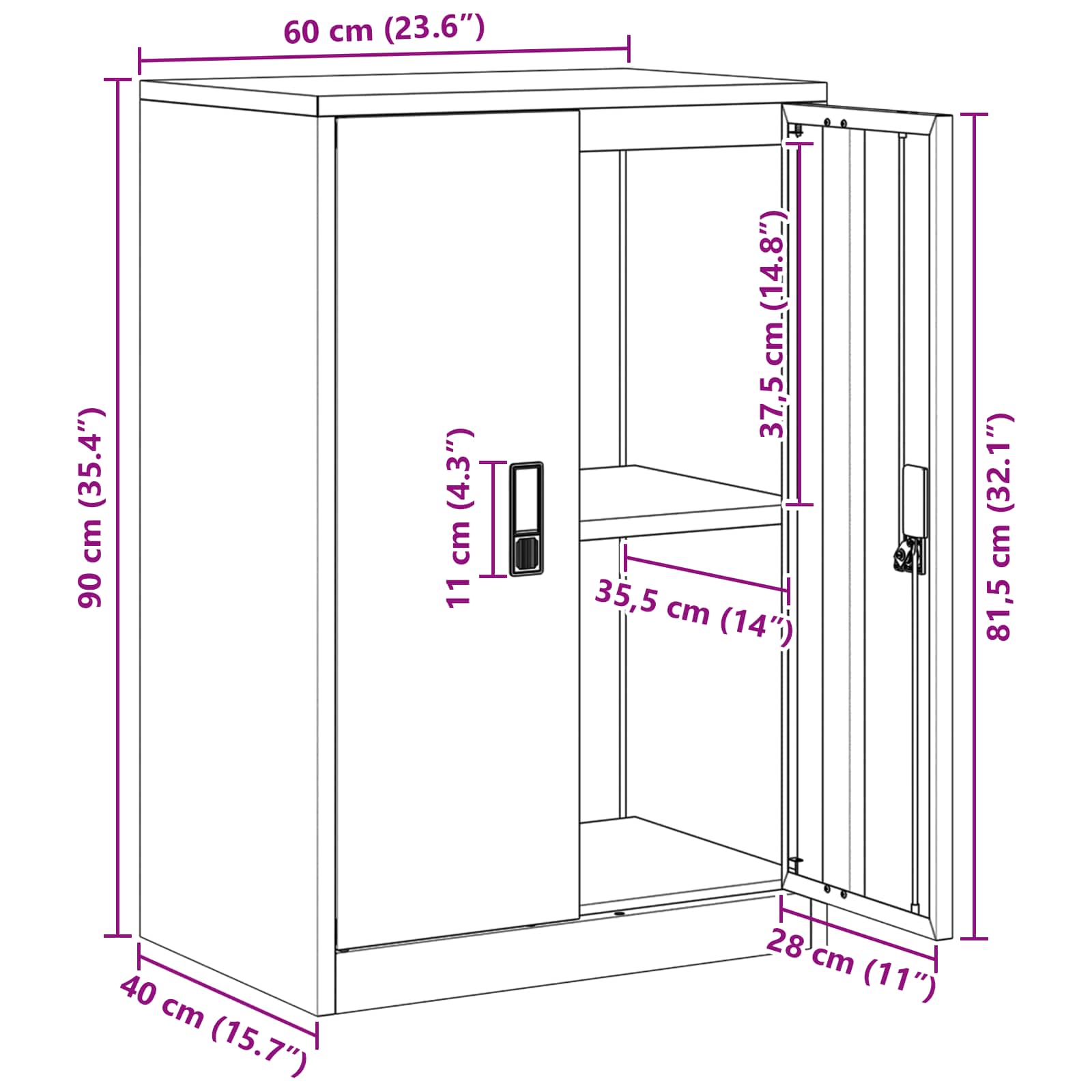 - Splošne dimenzije: 60 x 40 x 90 cm (D x Š x V)