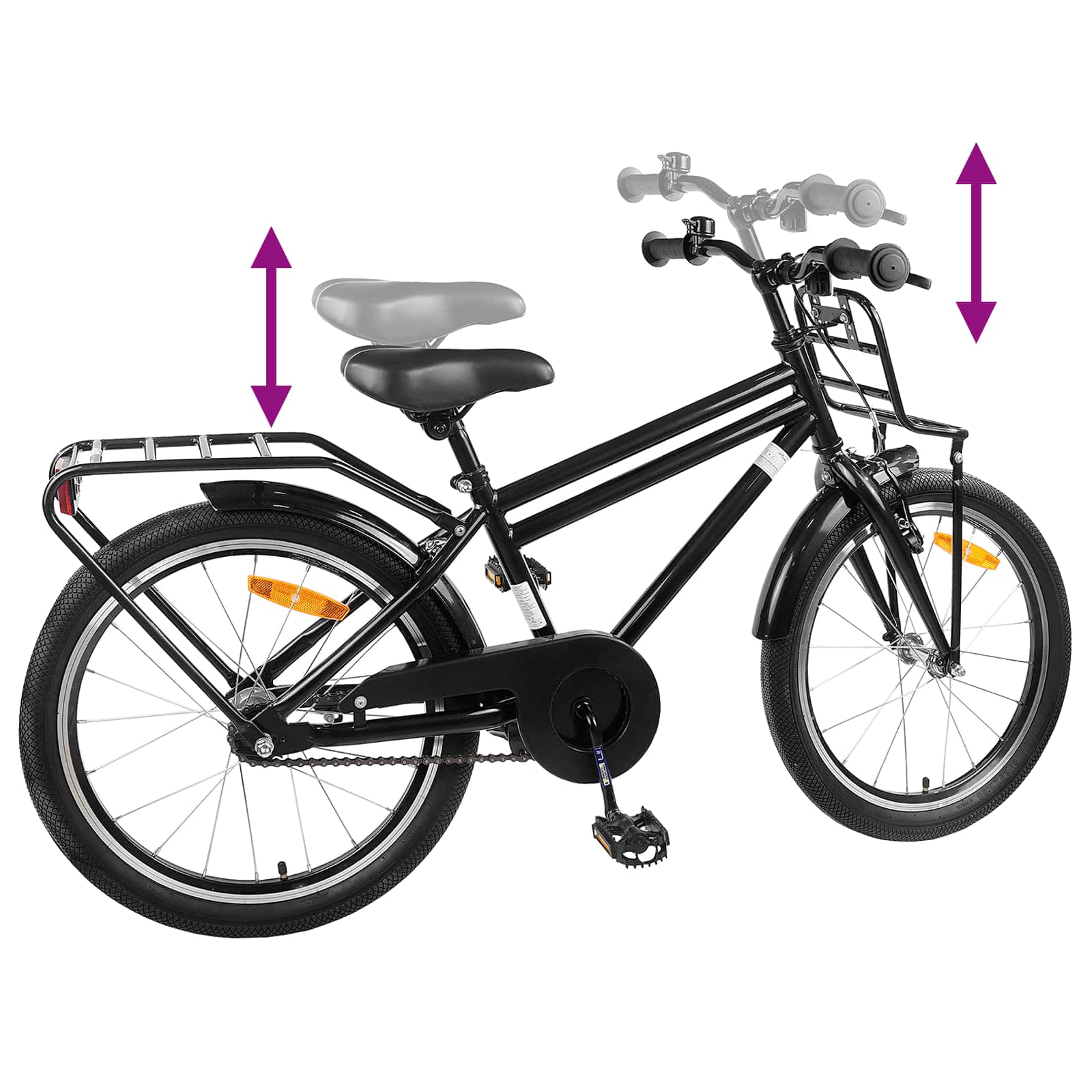 To otroško kolo združuje klasičen dizajn s funkcionalnostmi za mlade kolesarje. Ima jeklen okvir in vilico, kar mu daje zanesljivost, hkrati pa ponuja privlačen videz, idealen za otroke, ki raziskujejo svojo sosesko s stilom. Njegove čiste linije in zanimivi detajli spodbujajo avanturo in naredijo vsako vožnjo nepozabno. Narejeno je za zabavne vožnje in za spodbujanje varnih in samozavestnih kolesarskih izletov. Jeklena konstrukcija: Močan jekleni okvir in vilica kolesa nudita dolgotrajno trajnost in hkrati dovolj lahka, da se z njim enostavno upravlja. Jekleni material zagotavlja, da lahko kolo prenese dolgotrajno uporabo in ponuja stabilnost ter varnost na različnih terenih. Klasičen zavorni sistem: Opremljeno s klasičnim zavornim mehanizmom, ki omogoča varno ustavljanje, kar povečuje varnost vožnje. Enostavno je za uporabo, tako da mladi kolesarji z lahkoto ustavijo. Anatomsko sedlo: Prijazno do telesa in udobno, oblikovano tako, da zmanjšuje pritisk med vožnjo. Oblikuje se po telesu, kar omogoča ergonomsko sedenje in dolgotrajno udobje. Zaščita z blatniki: Zasnovano z blatniki, to kolo ščiti voznika pred pršenjem, da ostanejo suhi in čisti, ne glede na vreme. Enostavno vzdrževanje: Da bi kolo dolgo služilo, ga je treba hraniti na hladnem in suhem mestu. Redno vzdrževanje bo zagotovilo odlično delovanje in lep videz. Opozorilo! Višino sedeža prilagodite vozniku. Pomembno je, da pokrijete vse vzmeti pod sedežem, da se prepreči zatikanje prstov, če je nameščen otroški sedež. Kot vse mehanske komponente je tudi kolo izpostavljeno obrabi in visokim obremenitvam. Različni materiali in komponente se lahko na obrabo ali utrujenost zaradi obremenitev odzivajo na različne načine. Če je bila presegla življenjska doba komponente, lahko ta nenadoma odpove in povzroči poškodbe voznika. Vsaka oblika razpok, prask ali sprememba barve na območjih, ki so izpostavljena visokim obremenitvam, kaže, da je življenjska doba komponente ali celotnega kolesa iztekla in jo je treba zamenjati. Pri kompozitnih komponentah so poškodbe zaradi udarca lahko nevidne za uporabnika, zato mora proizvajalec pojasniti posledice poškodb zaradi udarca in da je v primeru udarca treba kompozitne komponente vrniti proizvajalcu v pregled ali uničiti in zamenjati. Vedno nosite čelado. Ne izvajajte akrobatskih trikov in ne skakajte.