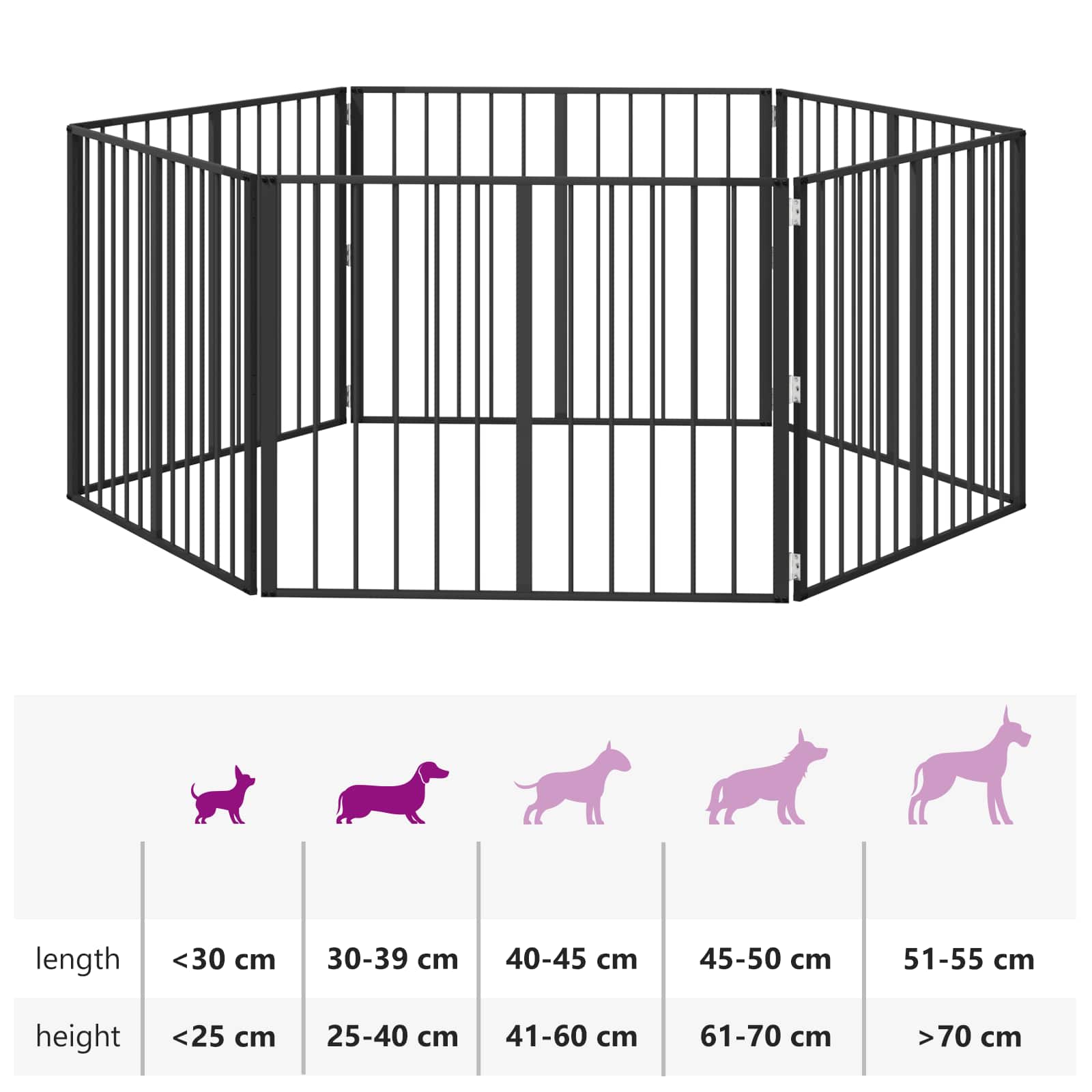 Ta minimalistična kovinska ograja za pse je idealna, da svojim kosmatincem ustvariš varen prostor v dnevni sobi. Vsestranska zasnova ti omogoča, da jo prilagodiš in tako zagotoviš svobodo za mladiče in majhne pse, da se brezskrbno igrajo. Zasnova iz pocinkanega jekla zagotavlja vzdržljivost in enostavno čiščenje, kar jo naredi popolno izbiro za vsak dom ljubiteljev psov. Črne mrežne plošče zagotavljajo vidljivost, tako da se vaš kuža nikoli ne bo počutil osamljenega. Ta ograja pa res ponuja željeno kombinacijo stila in funkcionalnosti. Pocinkana jeklena konstrukcija: Ograja je narejena iz močnega pocinkanega jekla, kar zagotavlja dolgotrajno uporabo in odpornost na nosi. Idealno za aktivne pasje prijatelje. Minimalno vzdrževanje brez dodatnih obdelav. DIY prilagoditve: Enostavno sestavljanje ograje omogoča prilagajanje vsakemu prostoru. Modularna zasnova vam daje svobodo pri oblikovanju in razširjanju brez strokovne pomoči. Zložljiva in prostorsko varčna: Zložljiv mehanizem omogoča hitro postavitev in shranjevanje. Idealno za domačinstva, ki potrebujejo vsestranske rešitve. Večnamenska uporaba: Ta ograja je super za notranje prostore, saj se lahko namesti čez vrata in hodnike. Prilagodljiva zasnova omogoča hitro nastavitev varnega prostora za igro ali počitek vašega psa. Enostavno vzdrževanje: Za ohranjanje lepega videza zadošča občasno brisanje. Ta ograja omogoča urejen in čist prostor za kužka brez dodatnega truda.
