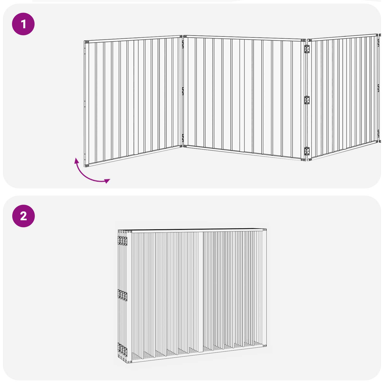Ta minimalistična kovinska ograja za pse je idealna, da svojim kosmatincem ustvariš varen prostor v dnevni sobi. Vsestranska zasnova ti omogoča, da jo prilagodiš in tako zagotoviš svobodo za mladiče in majhne pse, da se brezskrbno igrajo. Zasnova iz pocinkanega jekla zagotavlja vzdržljivost in enostavno čiščenje, kar jo naredi popolno izbiro za vsak dom ljubiteljev psov. Črne mrežne plošče zagotavljajo vidljivost, tako da se vaš kuža nikoli ne bo počutil osamljenega. Ta ograja pa res ponuja željeno kombinacijo stila in funkcionalnosti. Pocinkana jeklena konstrukcija: Ograja je narejena iz močnega pocinkanega jekla, kar zagotavlja dolgotrajno uporabo in odpornost na nosi. Idealno za aktivne pasje prijatelje. Minimalno vzdrževanje brez dodatnih obdelav. DIY prilagoditve: Enostavno sestavljanje ograje omogoča prilagajanje vsakemu prostoru. Modularna zasnova vam daje svobodo pri oblikovanju in razširjanju brez strokovne pomoči. Zložljiva in prostorsko varčna: Zložljiv mehanizem omogoča hitro postavitev in shranjevanje. Idealno za domačinstva, ki potrebujejo vsestranske rešitve. Večnamenska uporaba: Ta ograja je super za notranje prostore, saj se lahko namesti čez vrata in hodnike. Prilagodljiva zasnova omogoča hitro nastavitev varnega prostora za igro ali počitek vašega psa. Enostavno vzdrževanje: Za ohranjanje lepega videza zadošča občasno brisanje. Ta ograja omogoča urejen in čist prostor za kužka brez dodatnega truda.