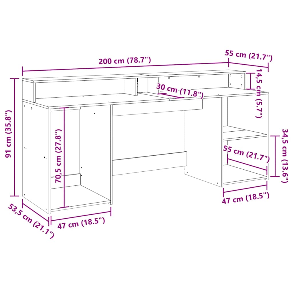 Pisalna miza z LED lučkami črna 200x55x91 cm inženirski les